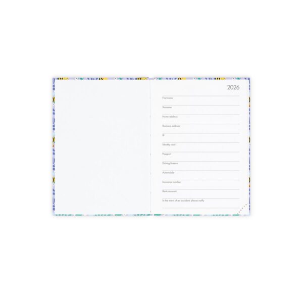 Ogni settimana è disposta su due pagine, offrendo ampio spazio per annotare appuntamenti, impegni e promemoria.
