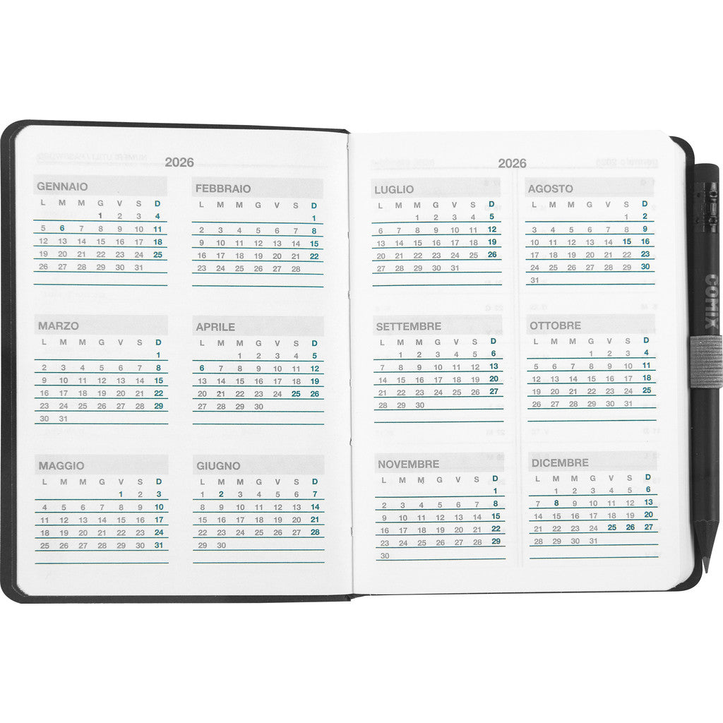 Agenda Giornaliera Comix Special 2026 12 Mesi Mignon con Matita Flow 9.5×13 cm
