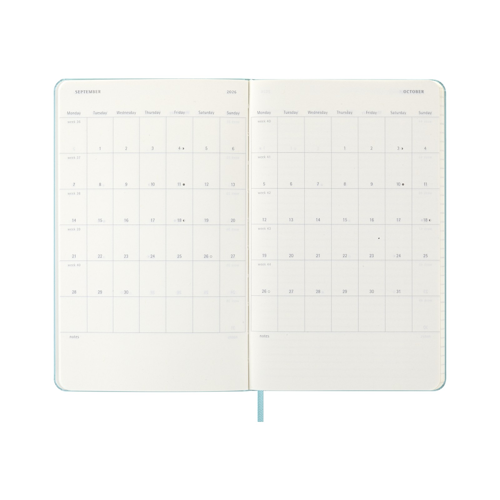 Agenda Settimanale 2026 Moleskine 13x21cm Rigida Acquamarina