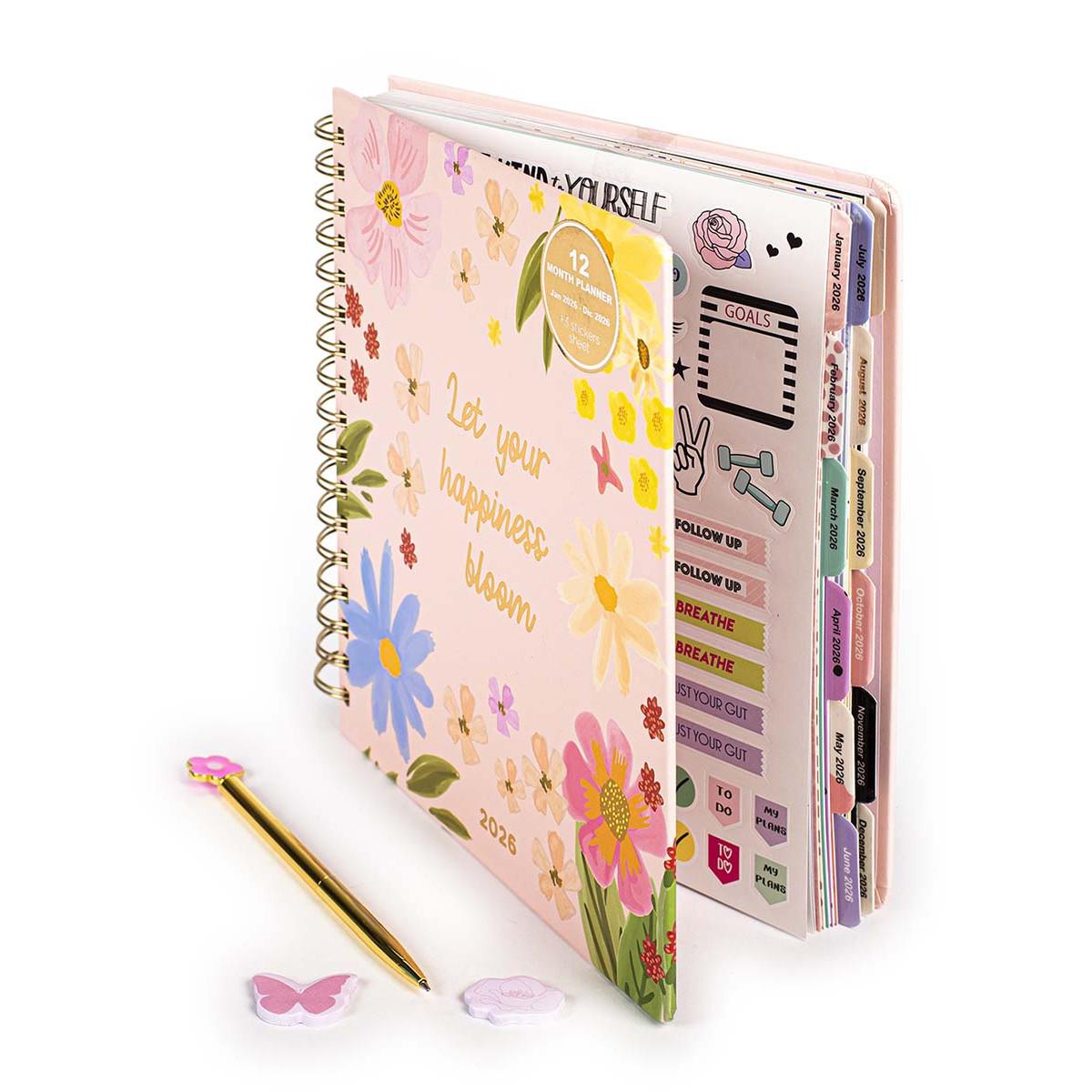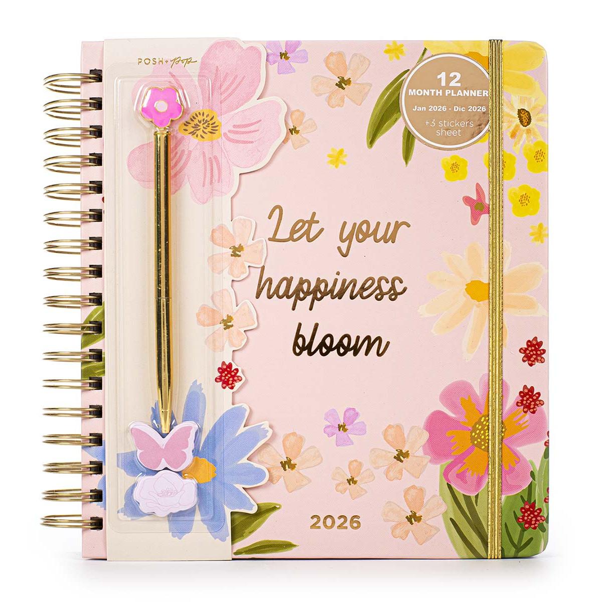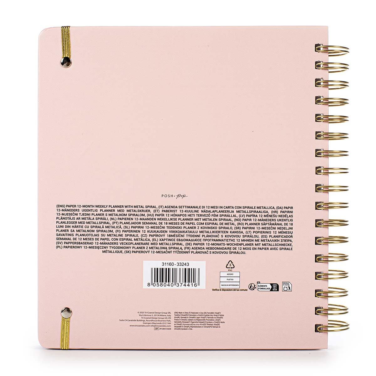 Agenda Settimanale Spiralata Posh & Pop 2026 12 Mesi con Penna Abbinata Floreale 21×23.5 cm