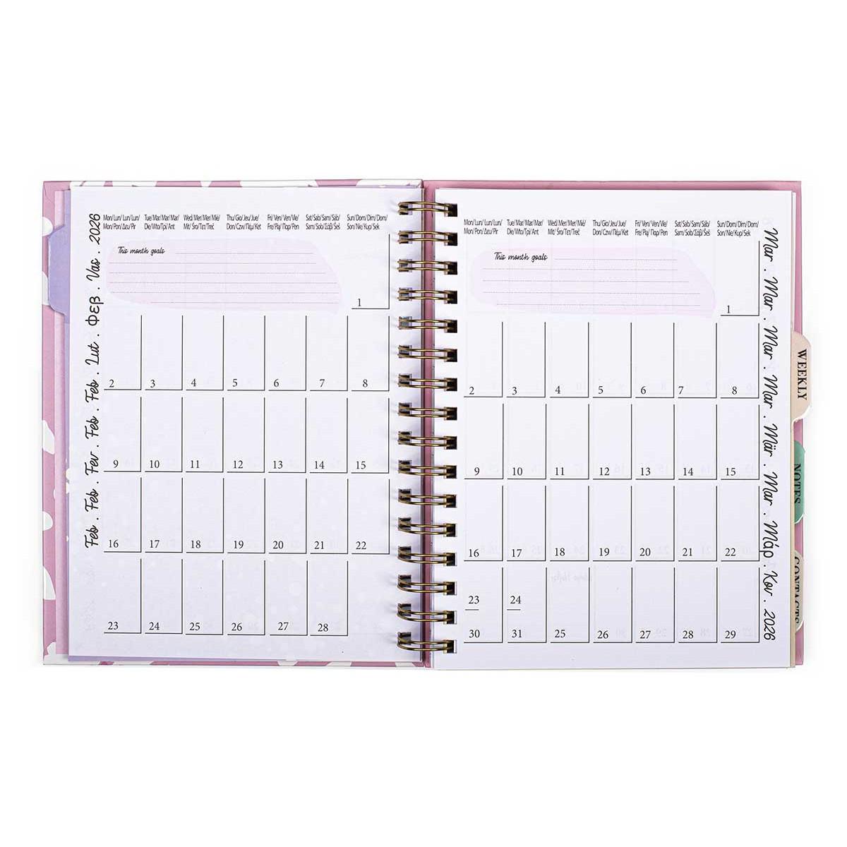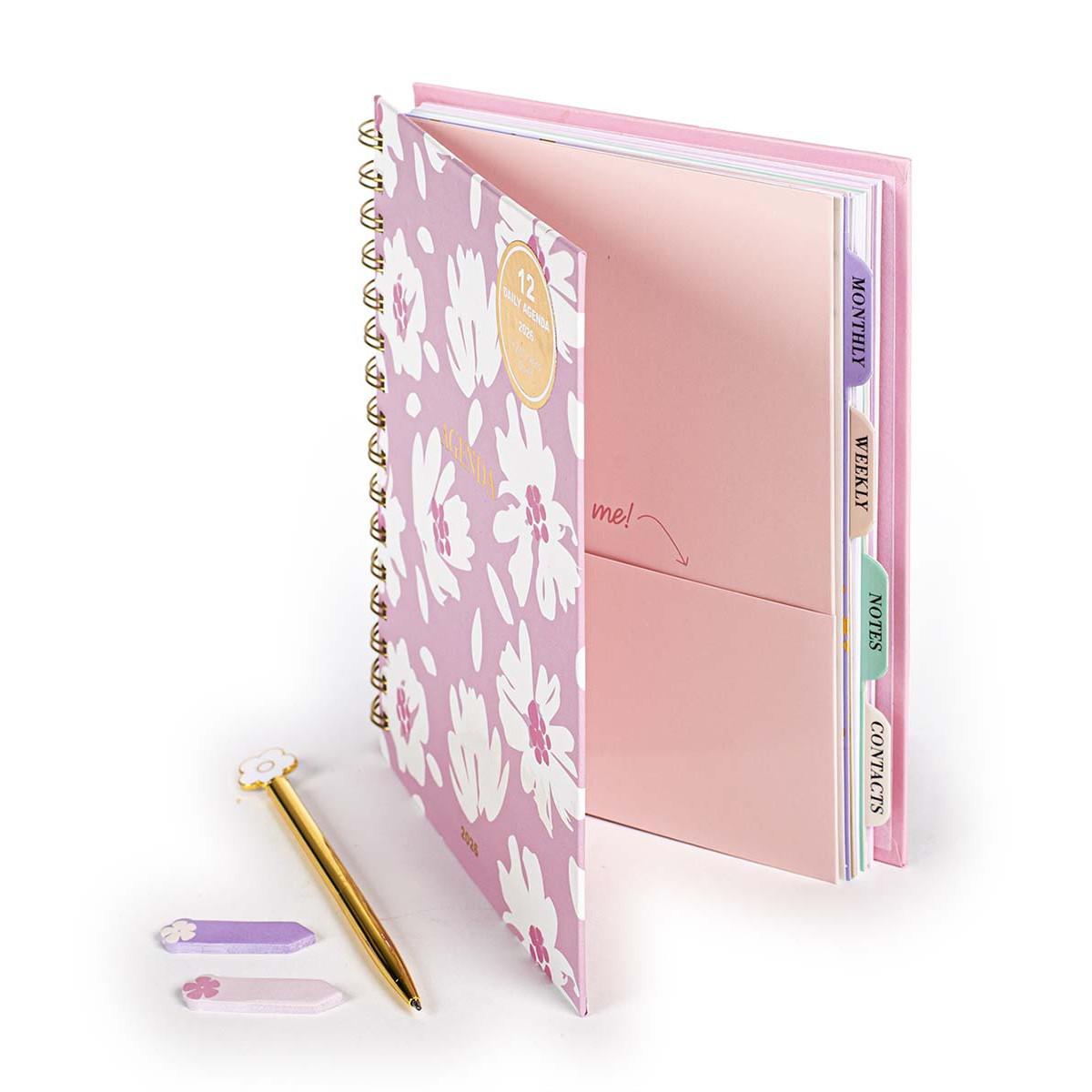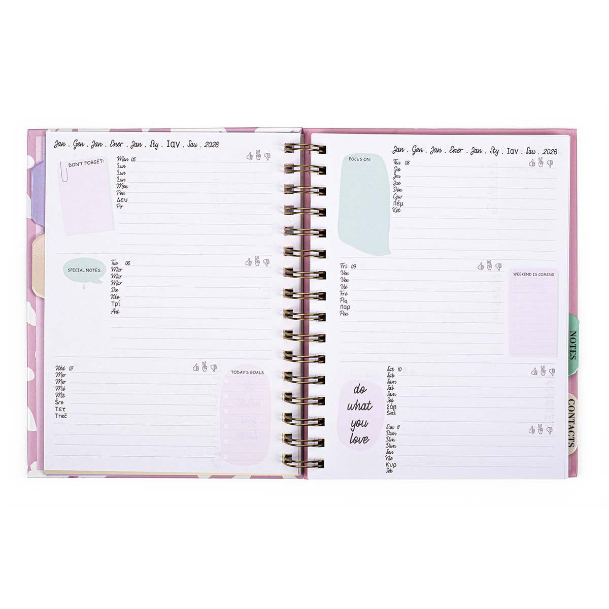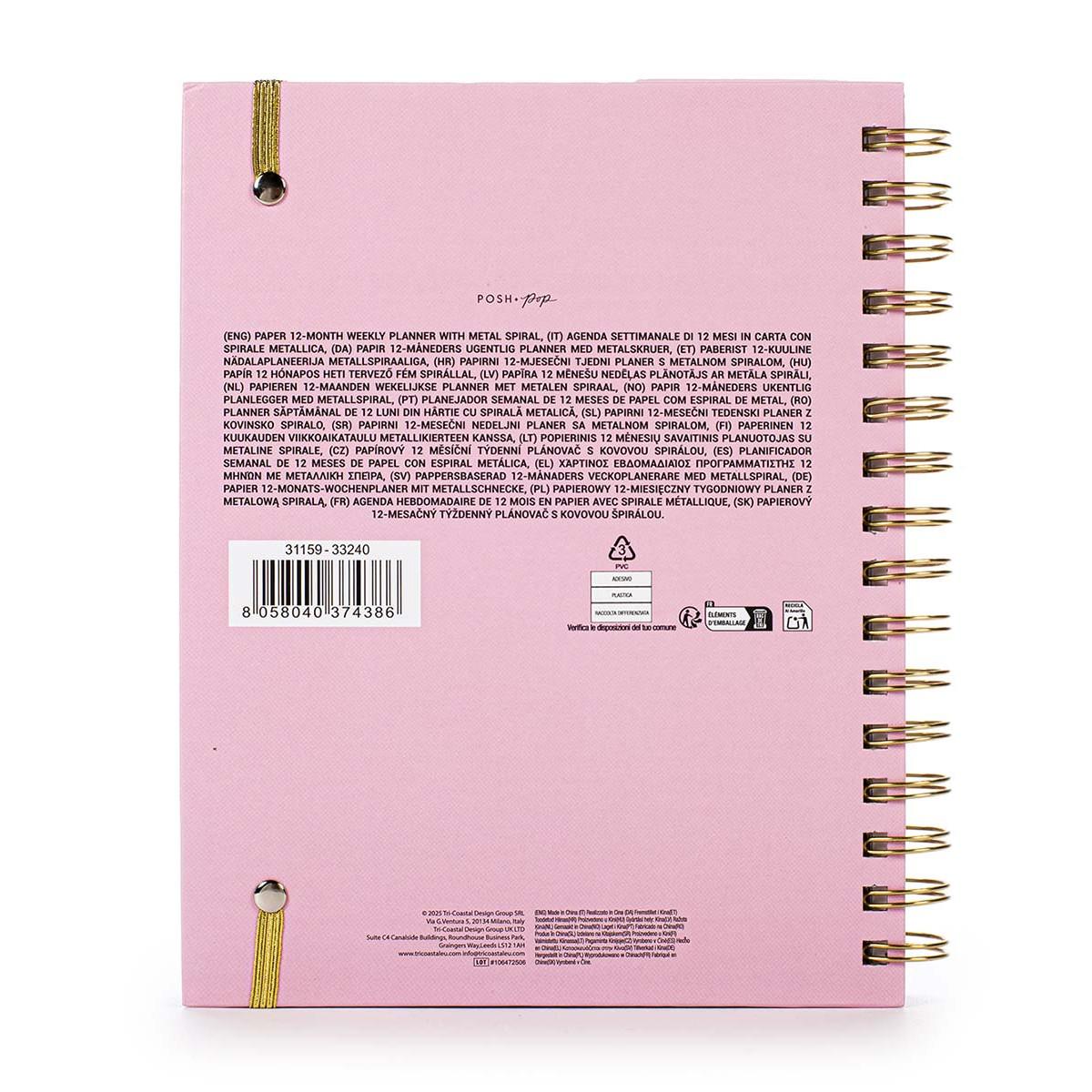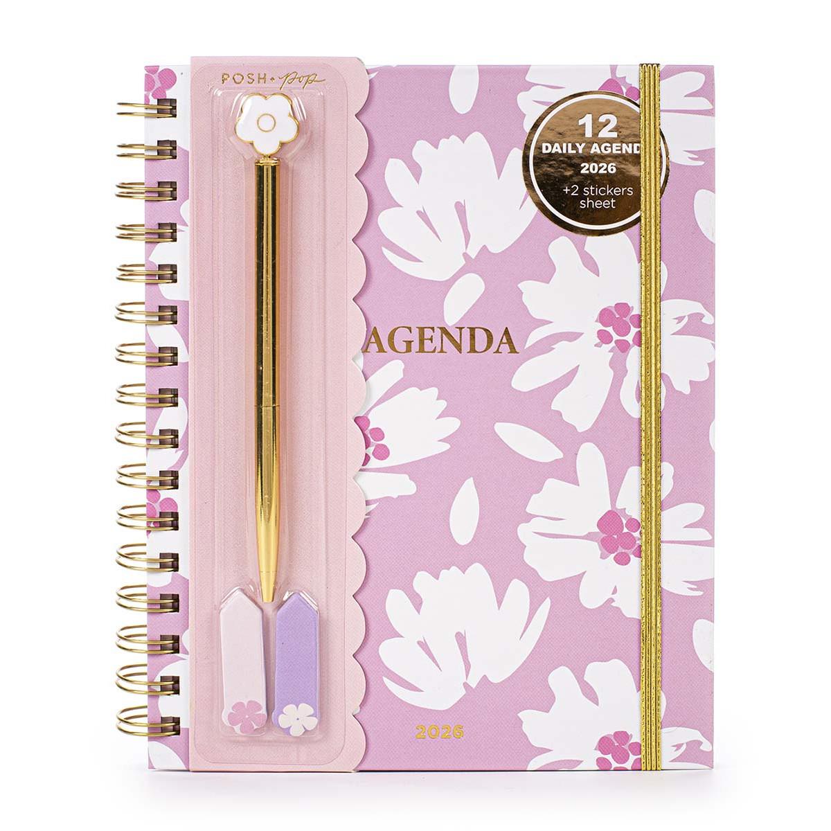 Agenda Settimanale Spiralata Posh & Pop 2026 12 Mesi con Penna Abbinata Lilla 17,1×21.6 cm