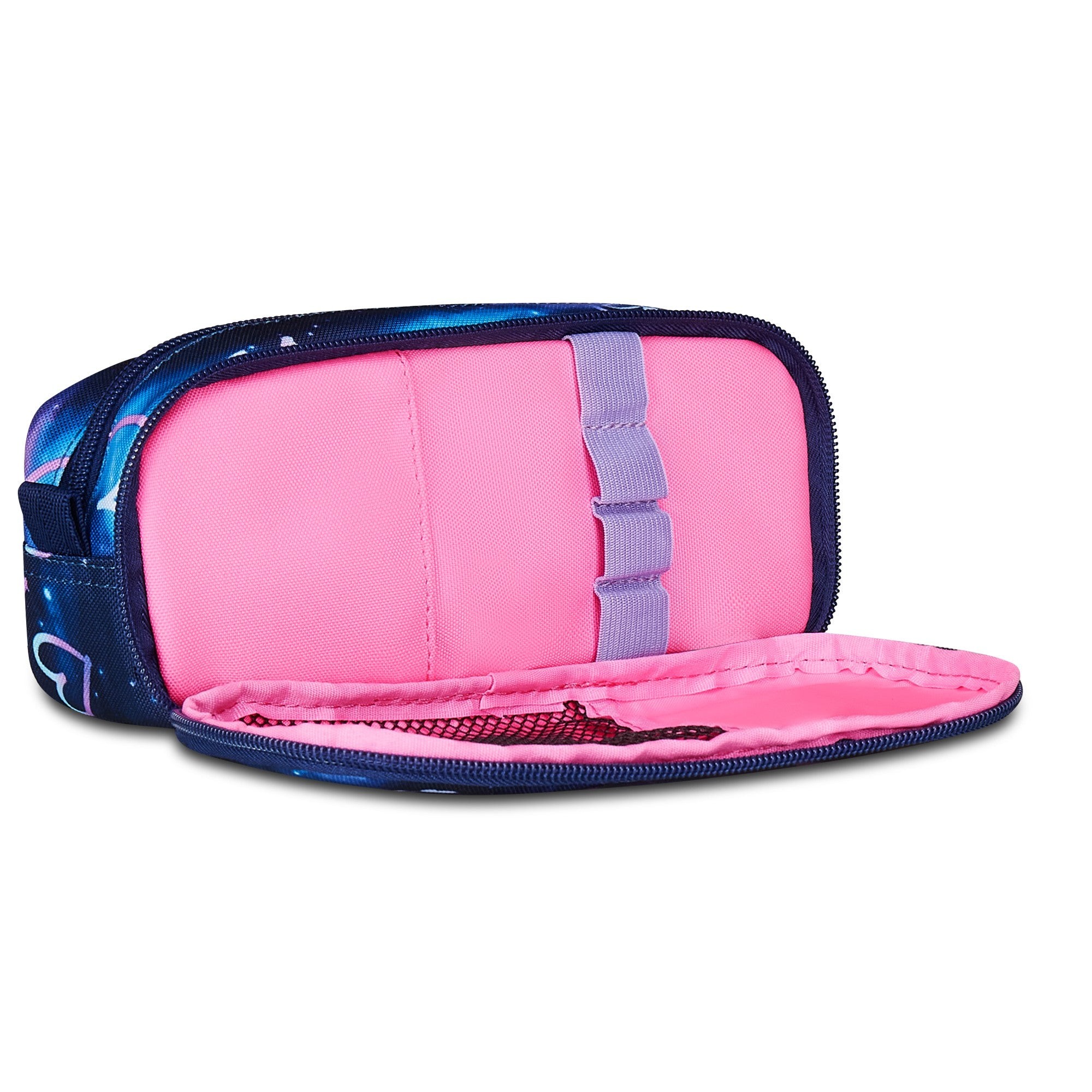 Portapenne con doppio scomparto e passanti elastici per penne.