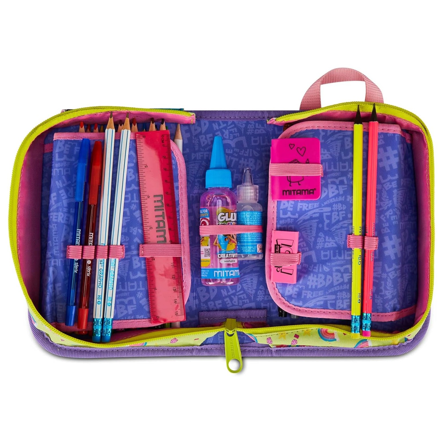 Astuccio Scuola Mitama 1 Zip Lilla – Triplo Scomparto Completo di Penne, Matite e Colori – Per Bambina Scuola Elementare