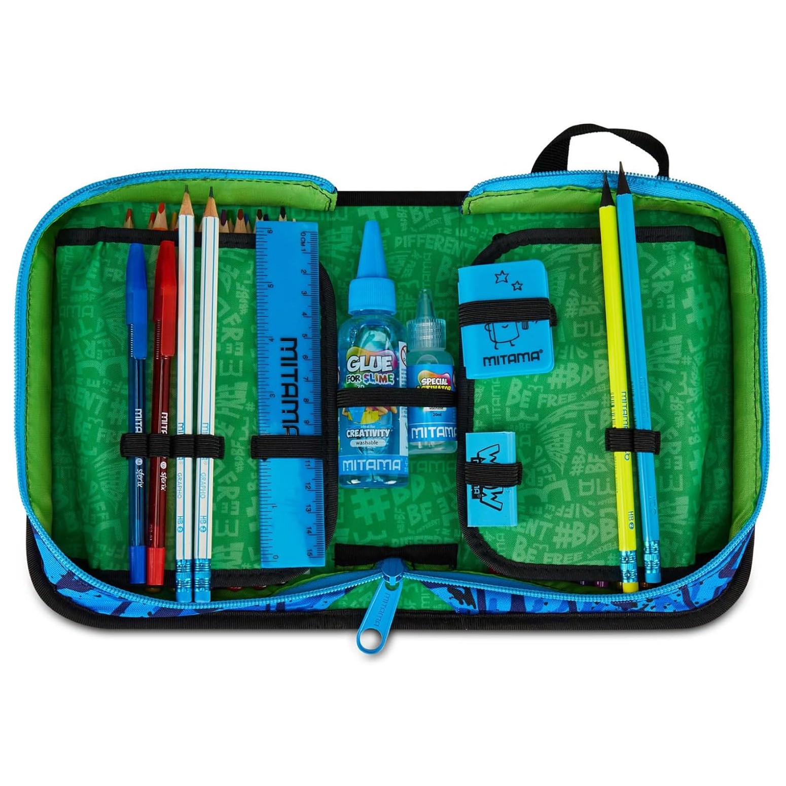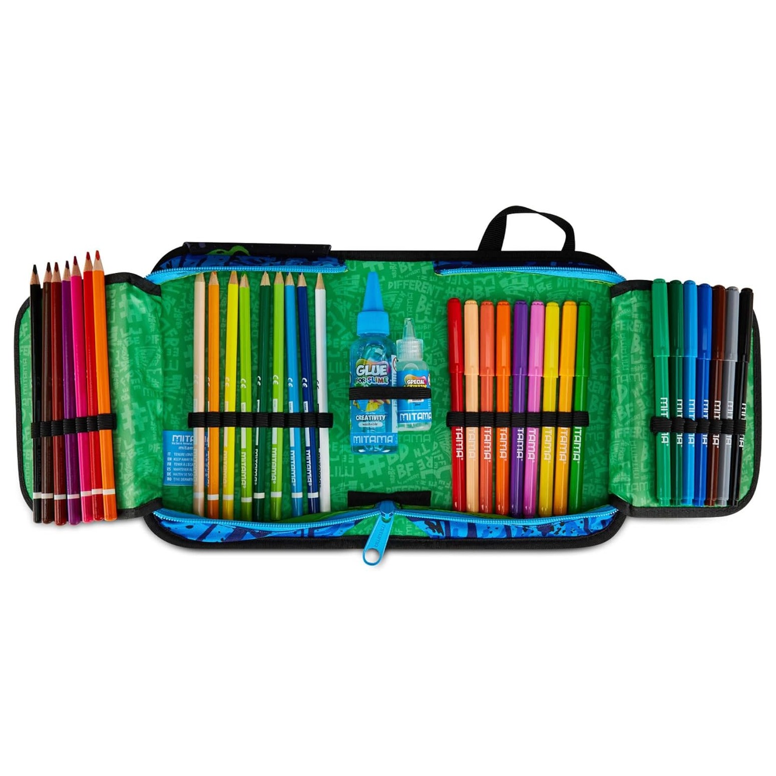 Astuccio Scuola Mitama 1 Zip Nero – Triplo Scomparto Completo di Penne, Matite e Colori – Per Bambino Scuola Elementare