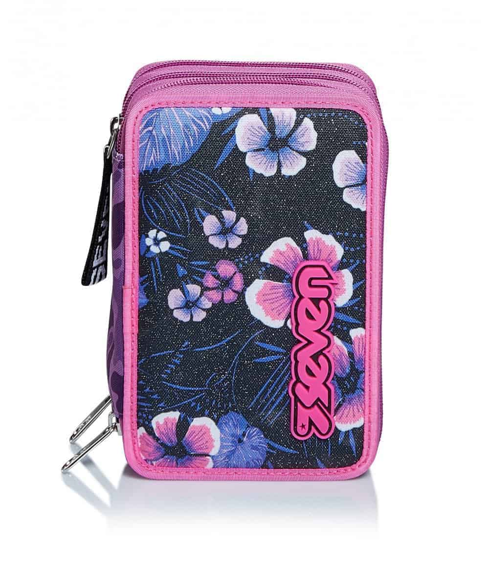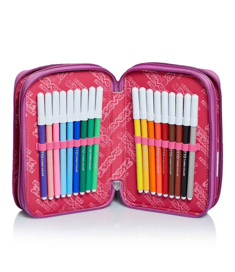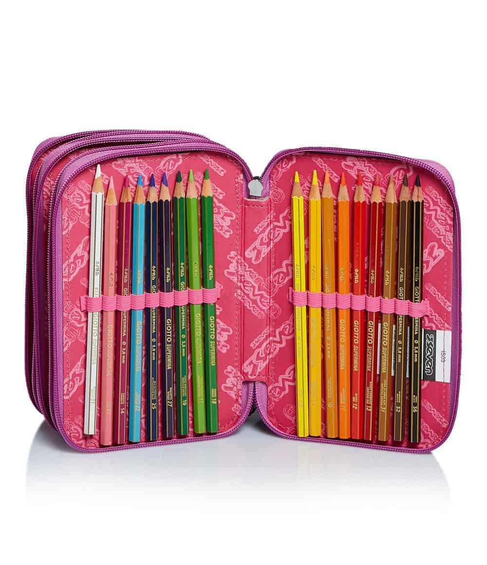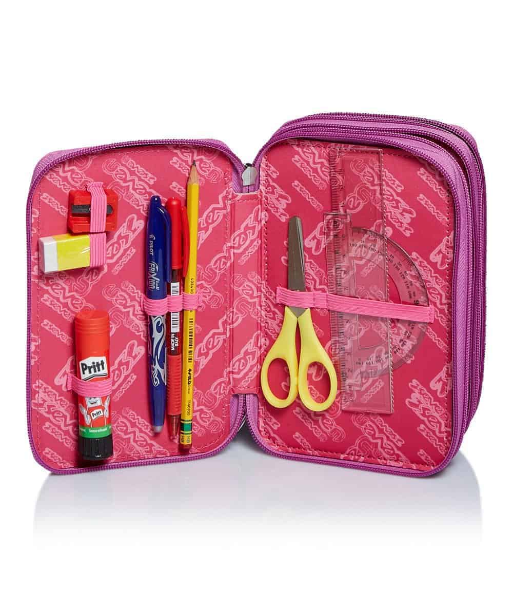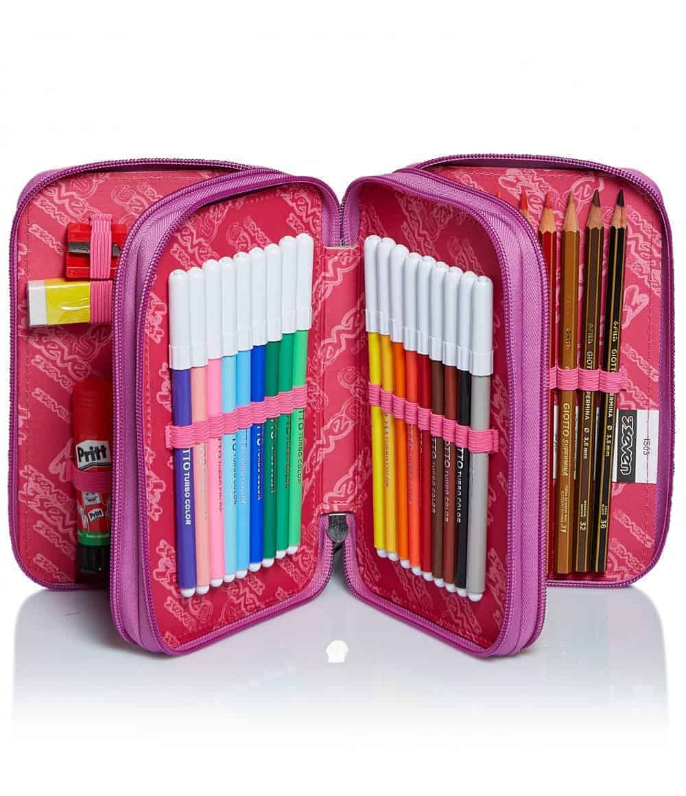 Tasche Triplo scomparto con elastici porta penne. Scomparti con zip.