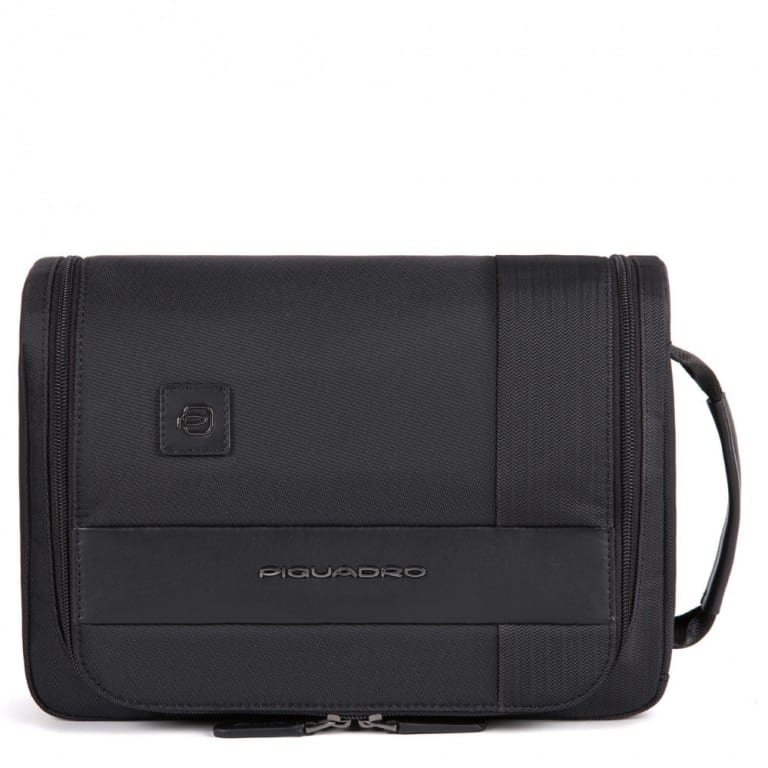 Beauty case Piquadro grande con gancio tessuto e pelle Tokyo nero BY3853S107/N