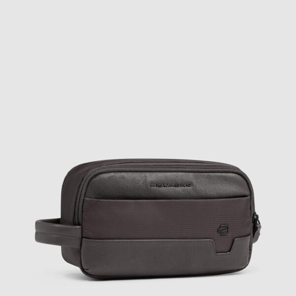 Beauty case uomo in tessuto riciclato e pelle a due scomparti