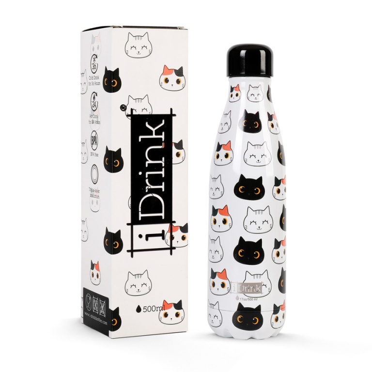 Borraccia Termica In Acciaio Inox con Beccuccio Trasparente Gatti 500ml ID0093