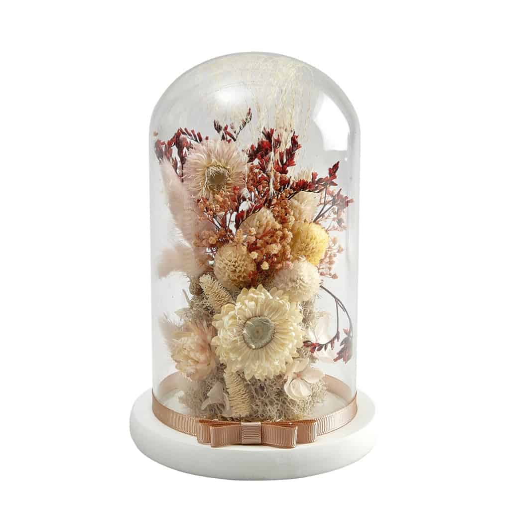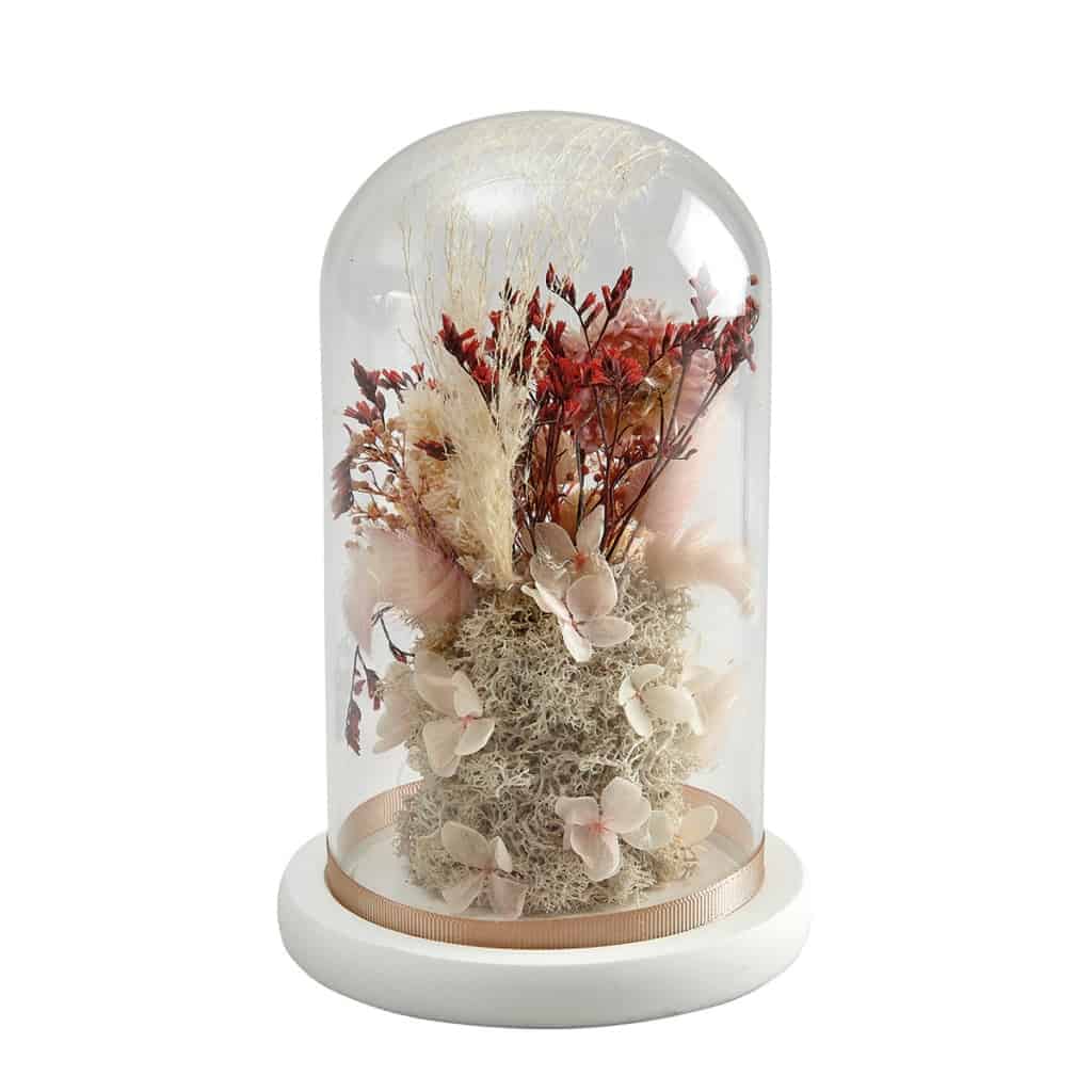 Dai un tocco di romanticismo e poesia alla tua decorazione con questa campana di fiori secchi. Porterà un tocco di colore e decorerà i tuoi interni per molto tempo.