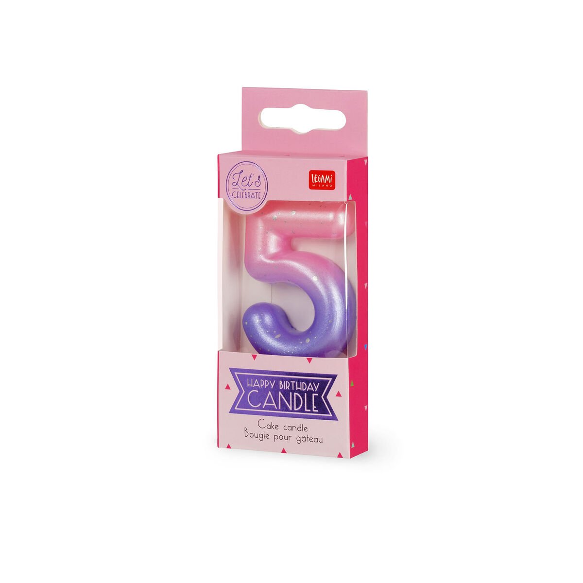 Candela per Torta – Happy Birthday Candle Numero 5 Rosa