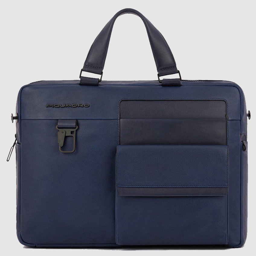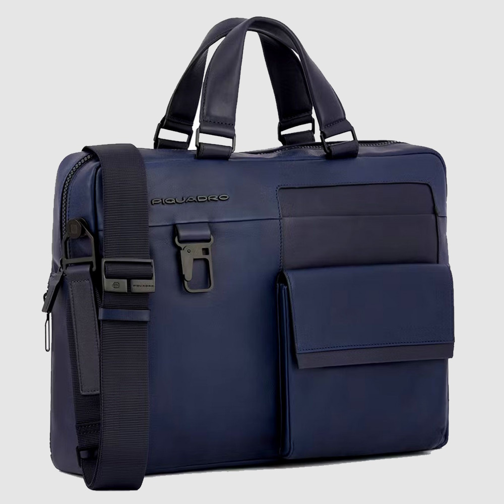 Cartella Piquadro Porta Computer Due Manici in Pelle Finn Blu