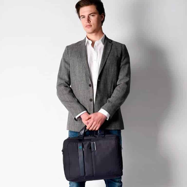 Cartella Piquadro porta pc espandibile tessuto e pelle P16 chevron/nero CA1903P16/CHEN