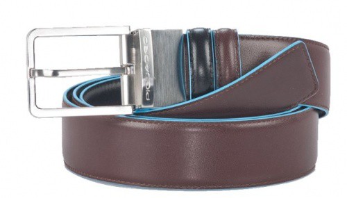 Cintura Piquadro Uomo Double Face In Pelle Nero Mogano Blue Square – CU2619B2/NMO