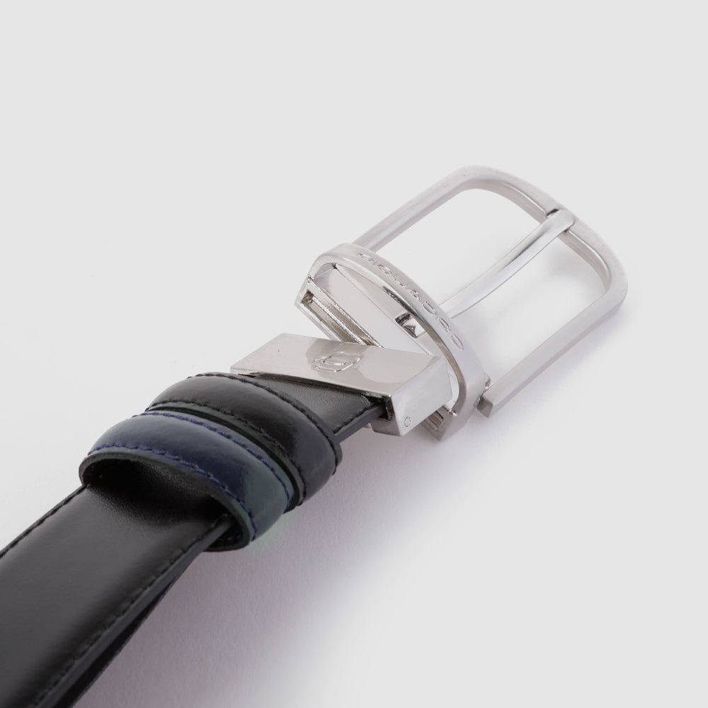 Cintura Piquadro uomo fibbia ardiglione in pelle nero blu Coll.11
