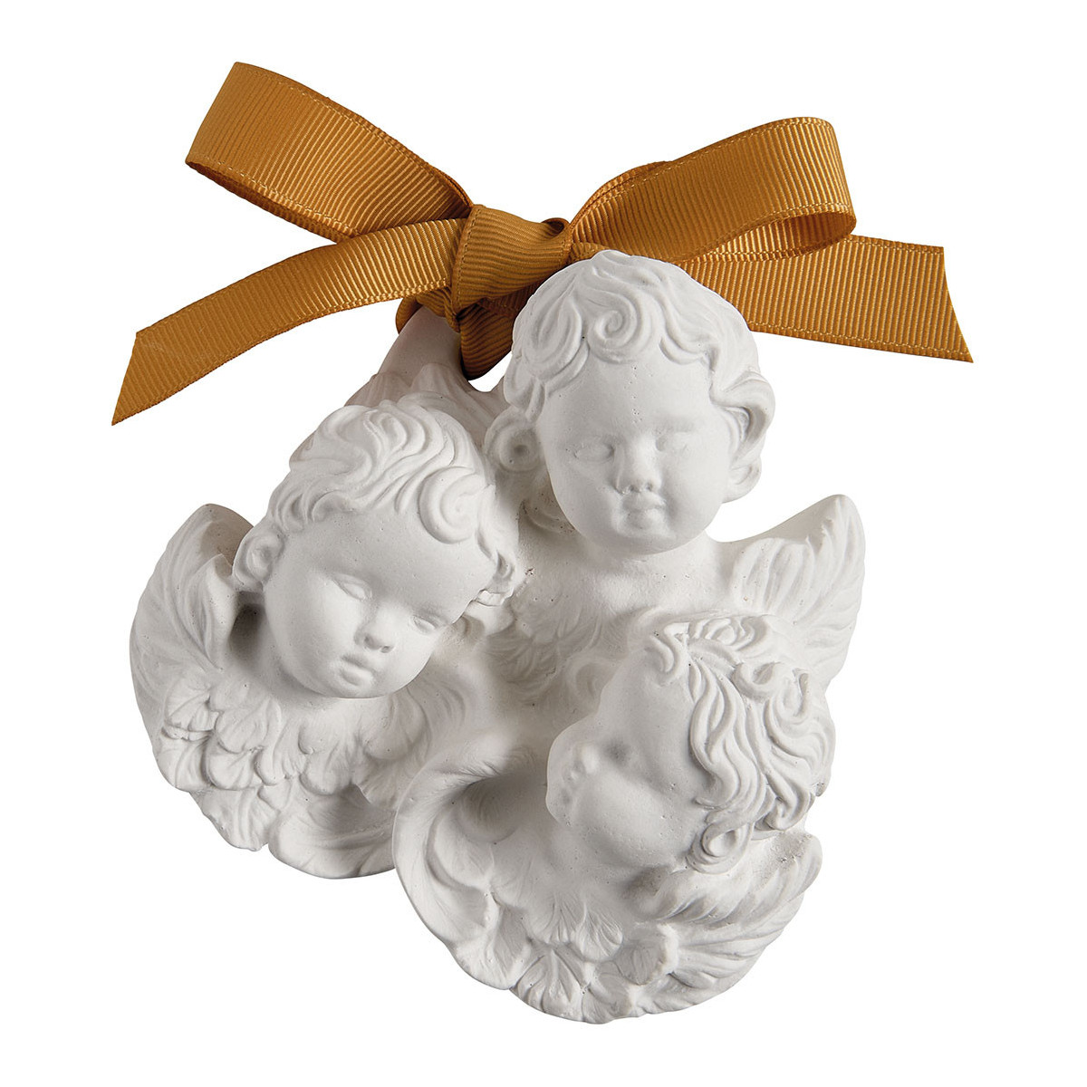Questo raffinato trio di cherubini in gesso, con i loro volti dolci e benevoli, è interamente realizzato a mano. Profumerà delicatamente e a lungo i tuoi spazi più intimi, come armadi, cassetti e valigie. Posizionato su un piccolo piatto, si trasformerà in un prezioso oggetto decorativo.