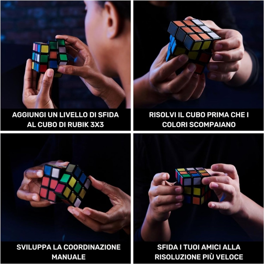 RUBIK’S PHANTOM: Il Cubo di Rubik fantasma è un Cubo di Rubik 3×3 a 6 lati il cui colore si rivela con il calore delle mani grazie alla tecnologia termocromica; per risolvere il rompicapo antistress basta toccare i lati del cubo, in questo modo appariranno i colori e sarà possibile completarlo