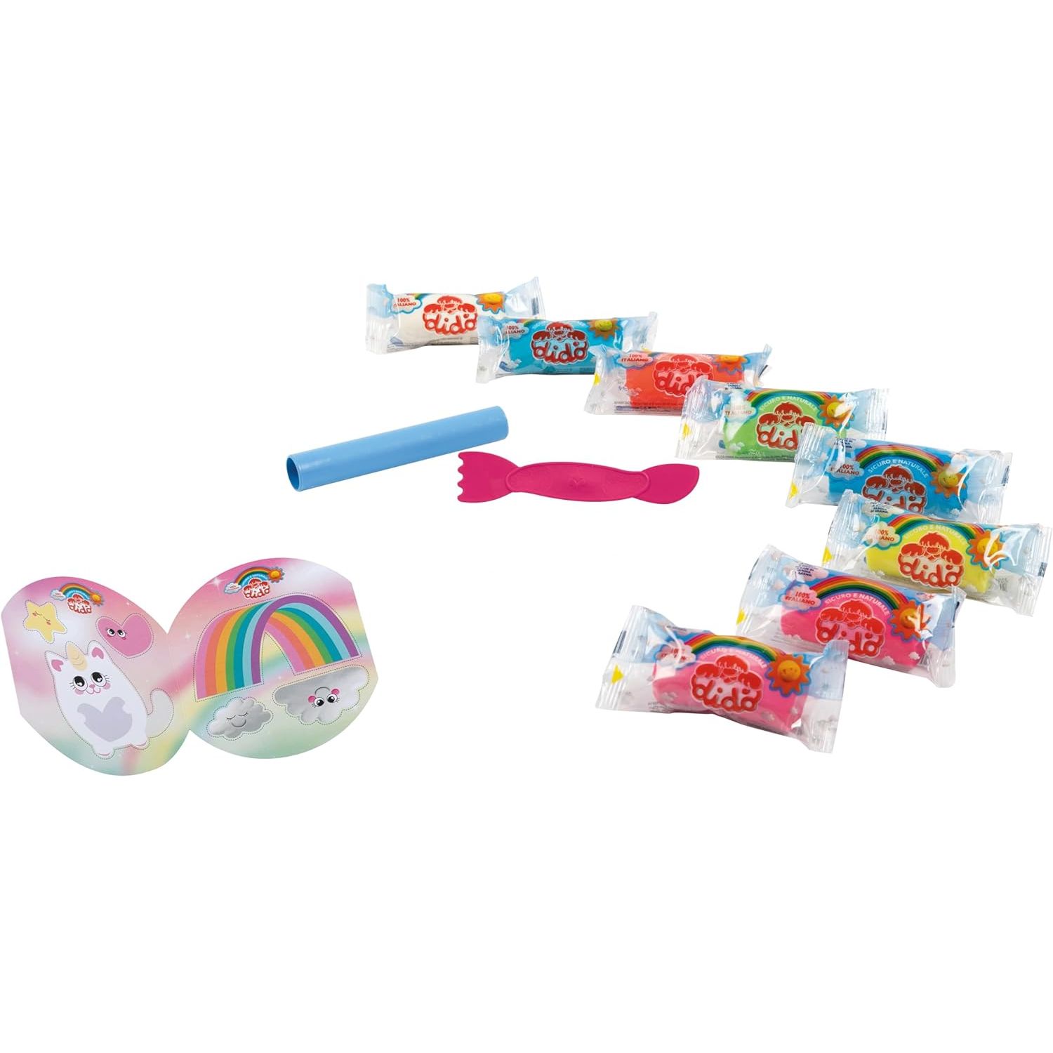 8 salsicciotti di pasta Didò da 50g in colori glitterati assortiti