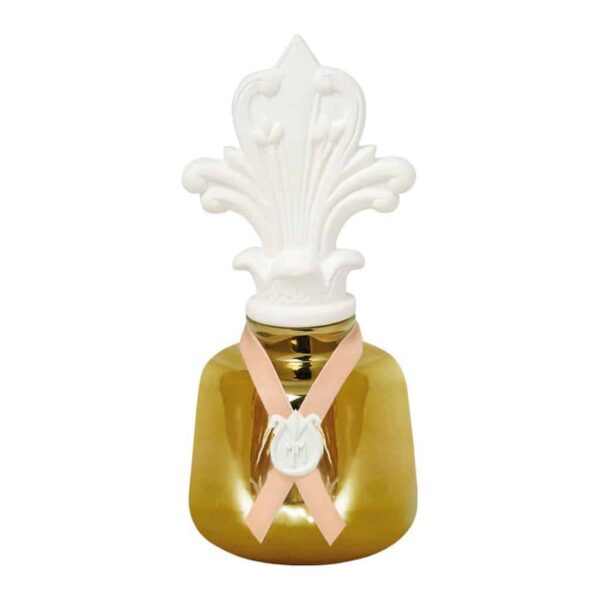 Sontuoso e raffinato nella sua cornice dorata, questo diffusore di fragranze per ambienti profuma continuamente i tuoi interni con Antoinette, un profumo immaginato come una delizia floreale dove il miele gourmet incontra un bouquet di fiori bianchi. Una volta inserito nel diffusore, il fiore di biscotto in porcellana assorbe il profumo per capillarità per diffonderlo gradualmente nell’aria ambiente.
