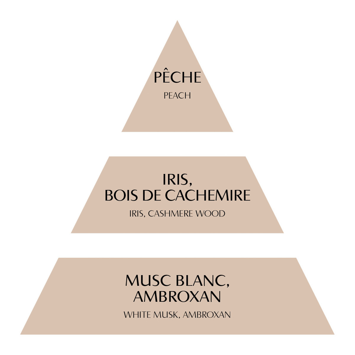 Lasciati avvolgere da Bois de Cachemire, una fragranza che accarezza i sensi con le sue note vellutate di pesca, preludio a un cuore fiorito di gelsomino e iris. Un abbraccio legnoso di cashmere si fonde delicatamente con le note confortanti del muschio bianco, creando un’atmosfera avvolgente e raffinata.