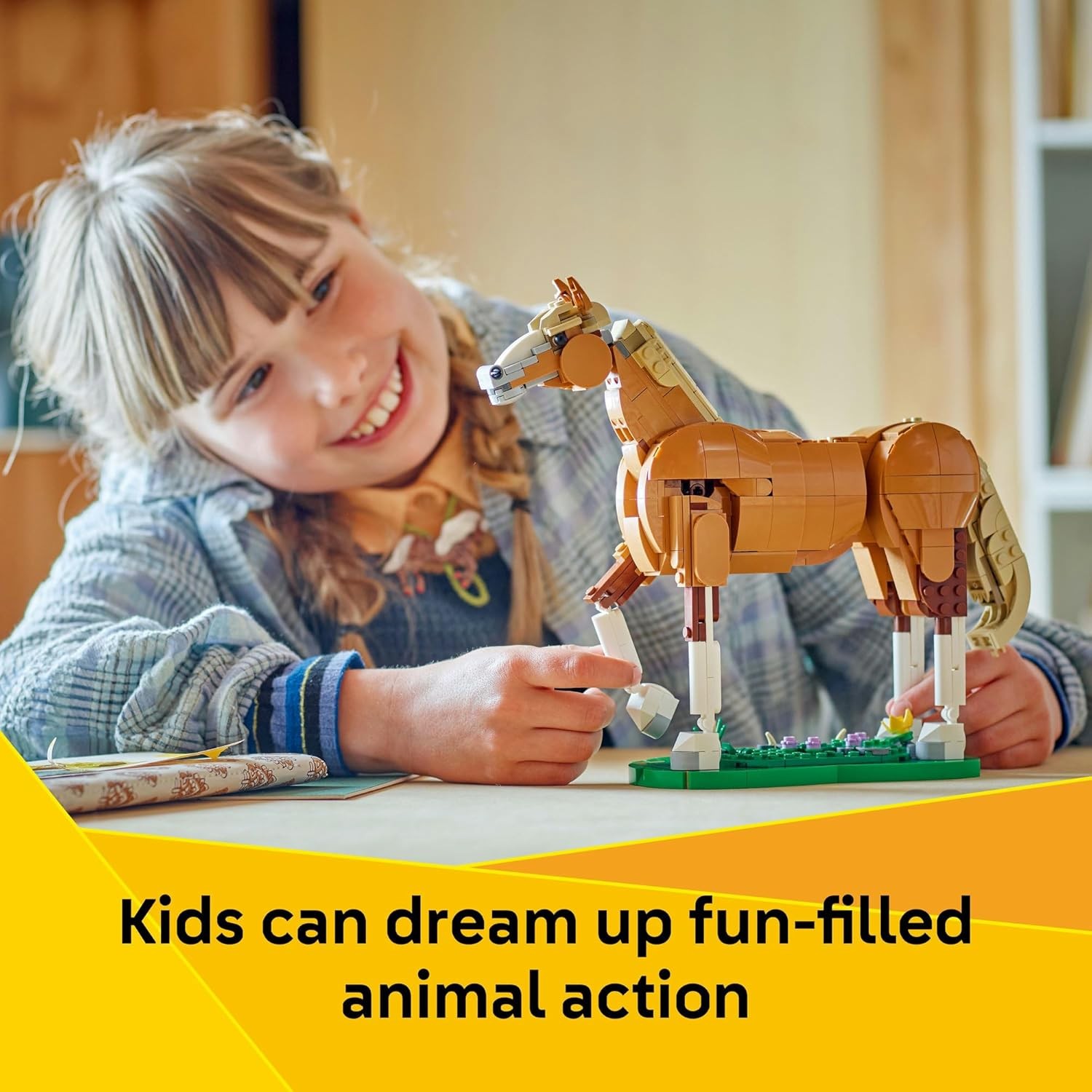 I bambini e le bambine dagli 9 anni in su appassionati di animali possono divertirsi con il set da costruzione Cavallo Meraviglioso (31166). Questo cavallo giocattolo è altamente articolato e consente di muovere testa, collo, fianchi, caviglie, coda e uno dei ginocchi. Inclusa nel set c’è una base con effetto erba, ideale per esporre il cavallo in tre pose differenti: in piedi su 3 o 4 zampe oppure impennato sulle zampe posteriori.