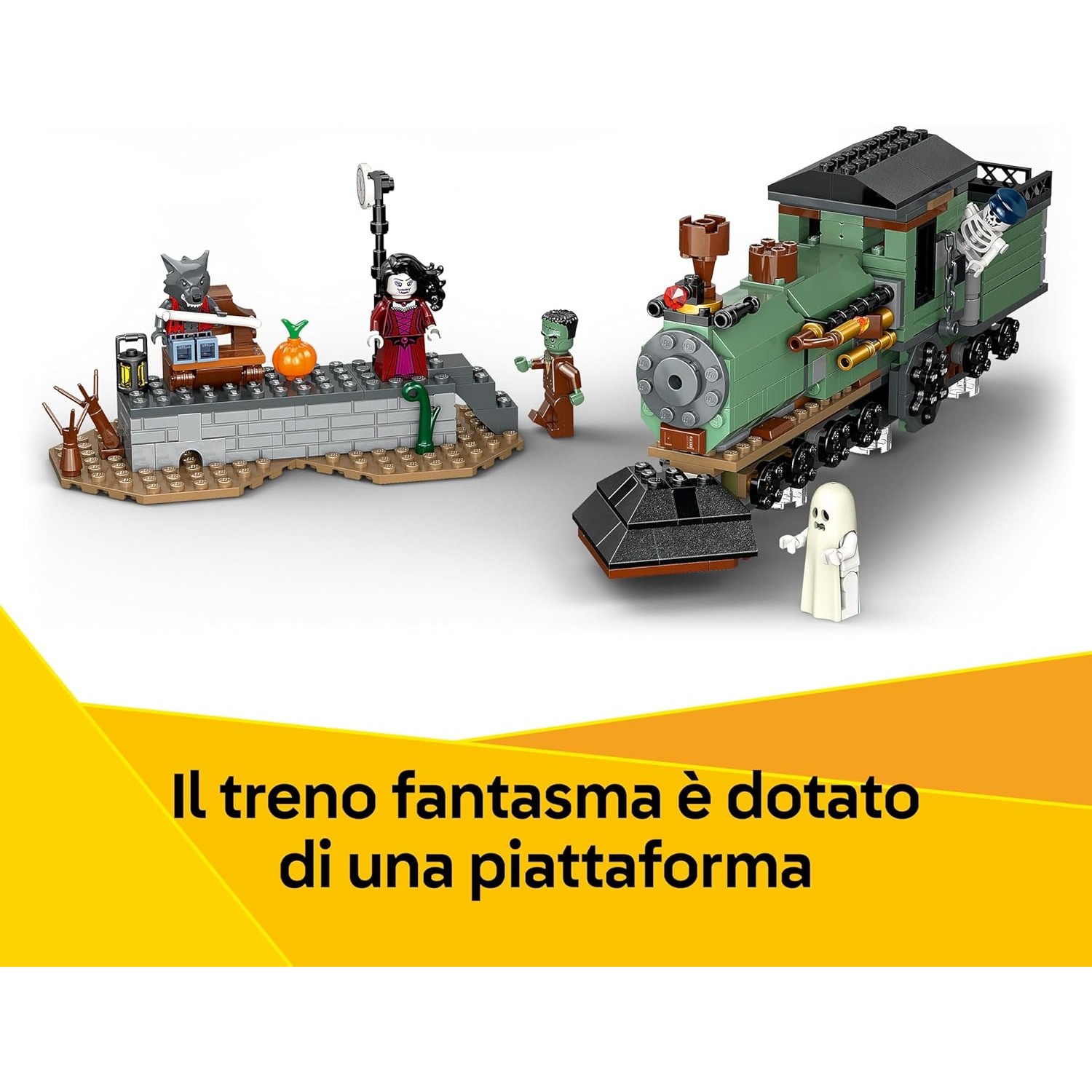 - Tre modelli da assemblare, uno alla volta: una casa stregata a due piani, una nave LEGO e un treno fantasma.