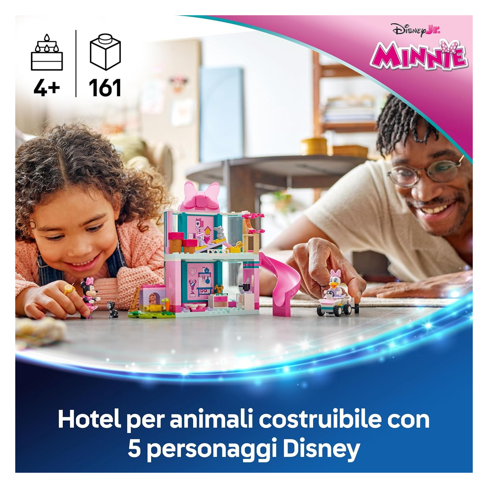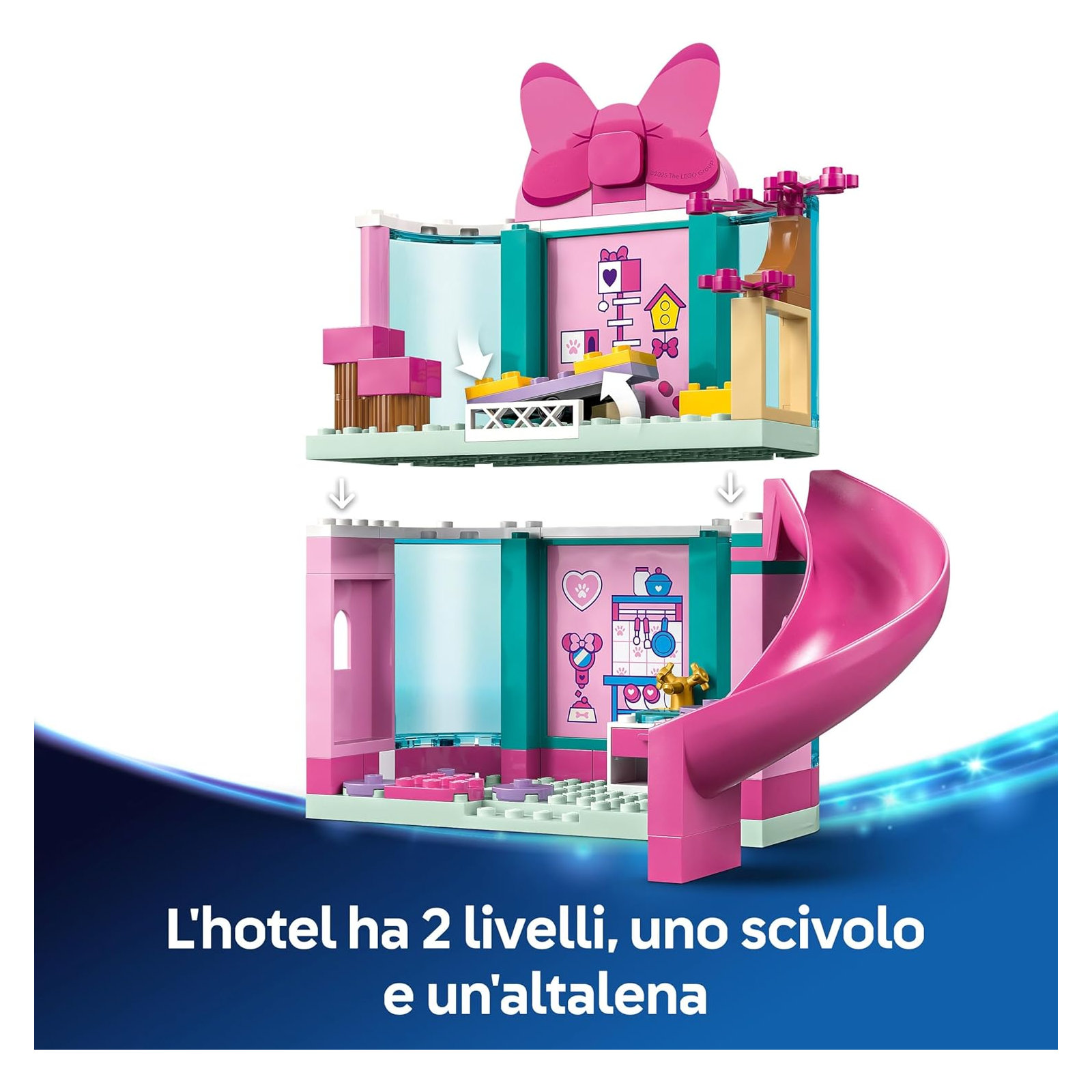 Benvenuti all’Hotel degli Animali di Minni LEGO® Disney! Un mondo di divertimento e creatività per i piccoli fan della Casa di Topolino dai 4 anni in su. Questo set è un regalo perfetto per stimolare l’immaginazione e il gioco di ruolo.