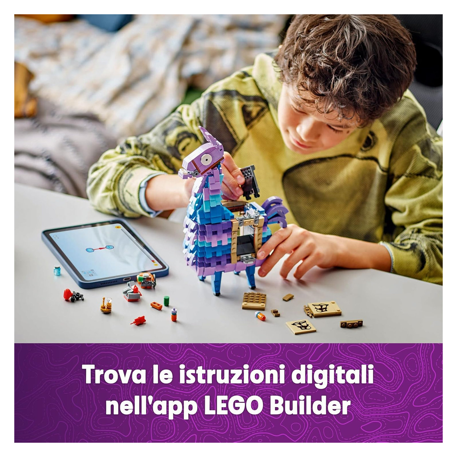 Una volta completata la costruzione, il Lama delle scorte si trasforma in un fantastico oggetto da esposizione. Porta l’emozione di Fortnite nella tua stanza, mostrando con orgoglio questo modello LEGO® unico.