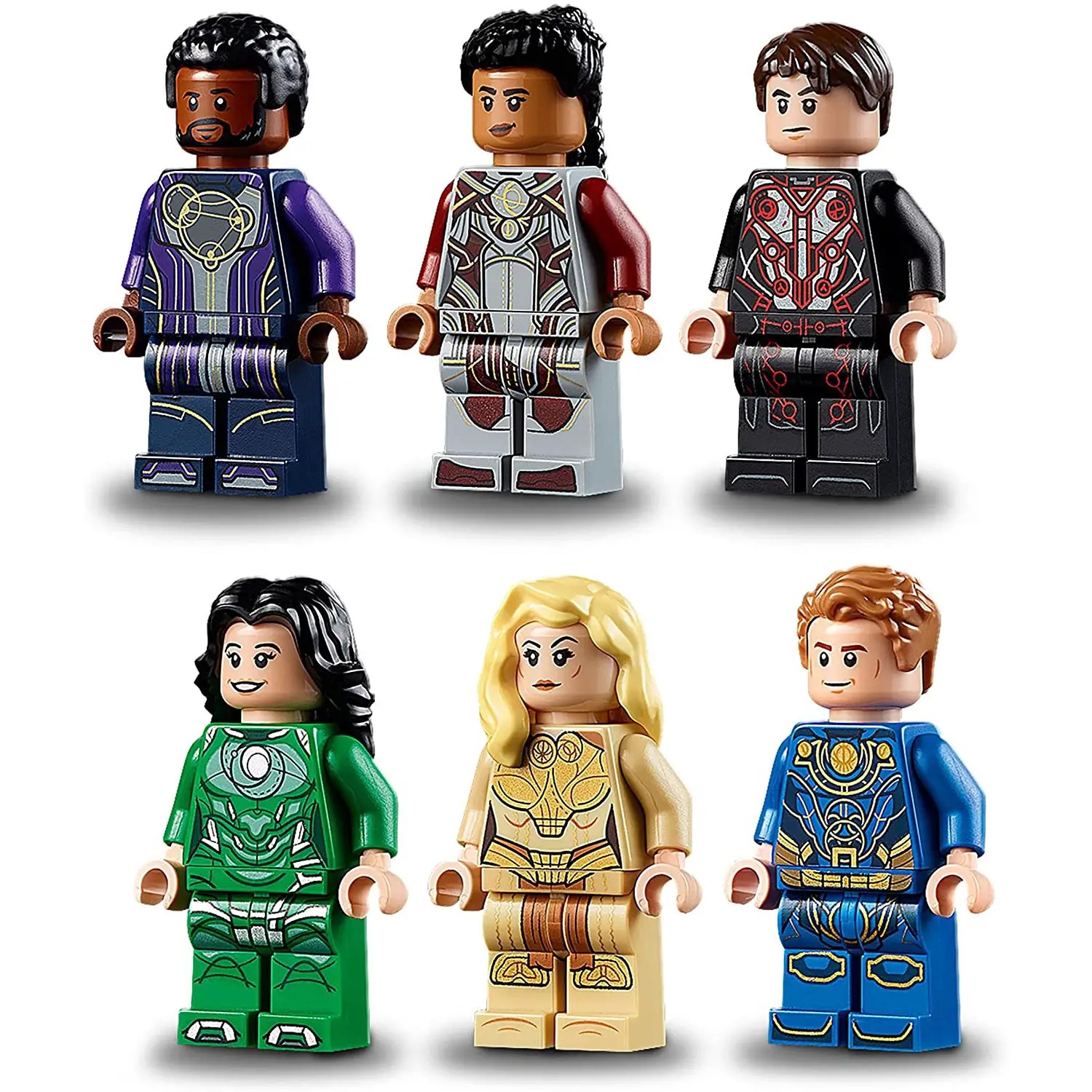Il set include 6 minifigure di Makkari, Ikaris, Thena, Sersi e gli esclusivi Druig e Phastos, 2 personaggi d’azione dei Deviant, tra cui Kro, il leader dei Deviant, un’astronave, armi e accessori.