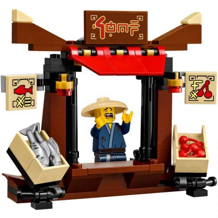 Gli accessori includono l’acqua gassata di Lloyd Garmadon, il cellulare di Nya, le manette dell’agente Toque e i soldi di Ham.