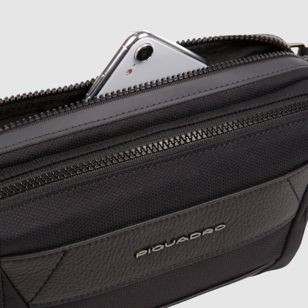 Marsupio Piquadro Pelle Tessuto Trakai Nero