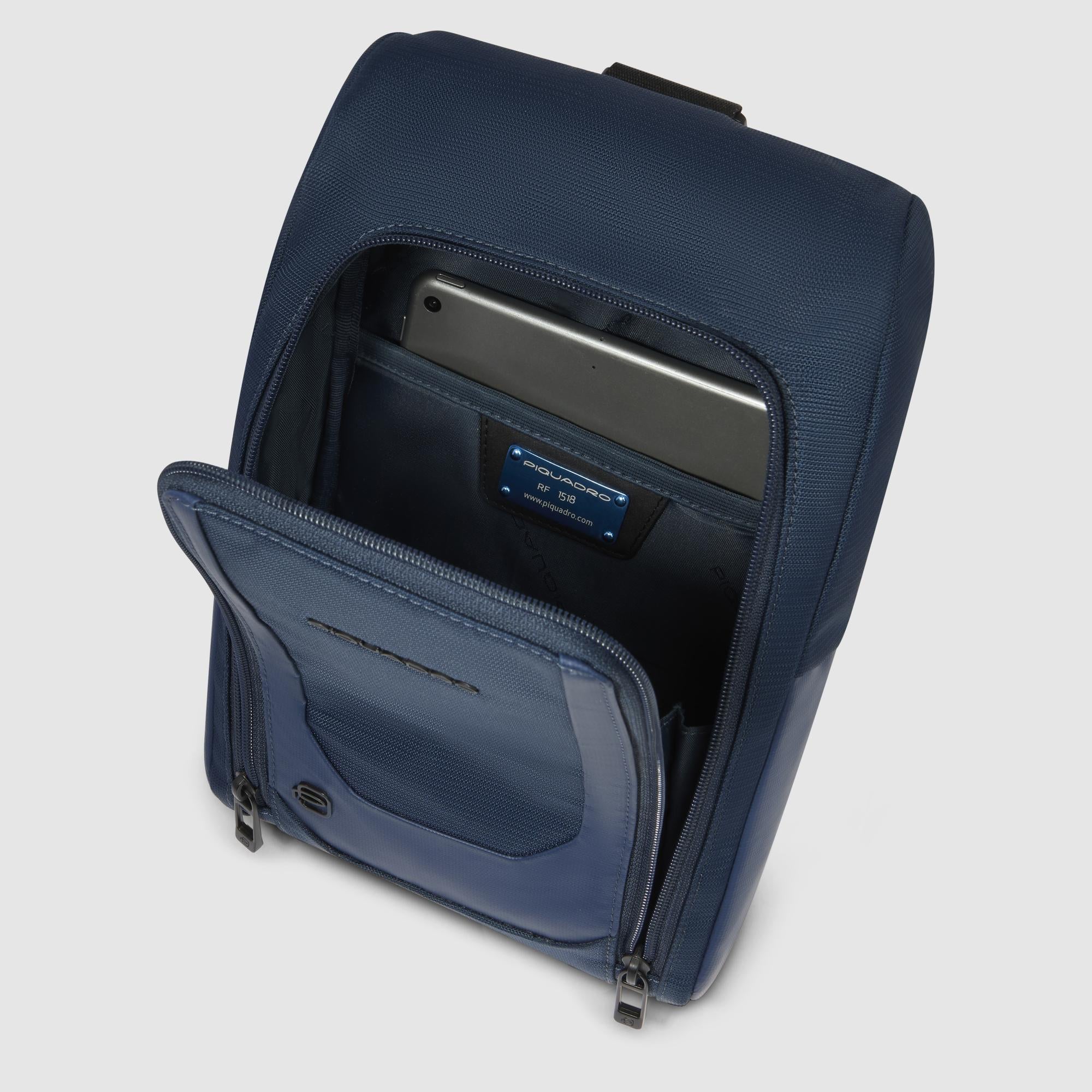 Monospalla Piquadro Uomo Porta Tablet Mini in Tessuto Riciclato e Pelle Easyjet Blu