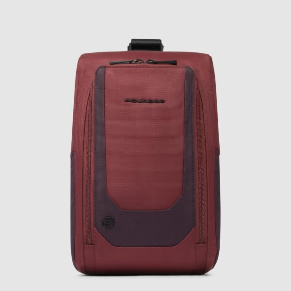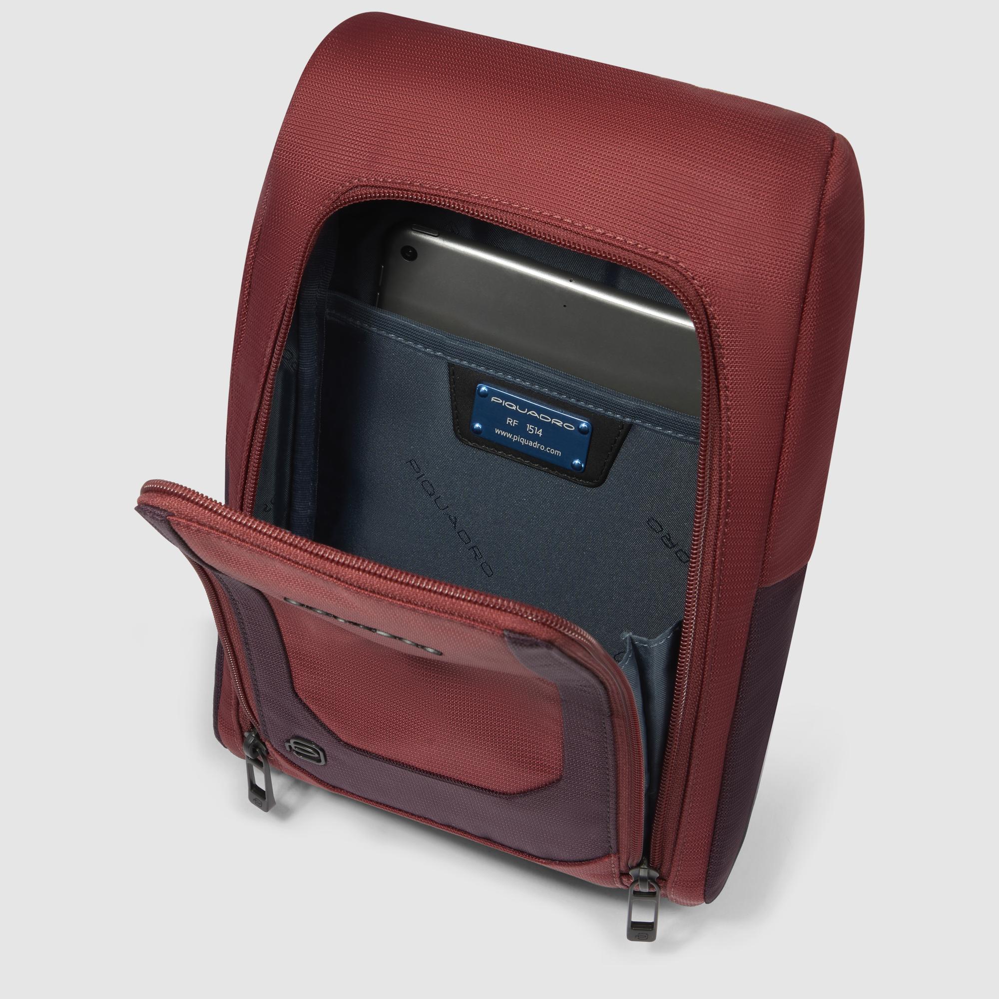 Zaino monospalla uomo porta iPad®mini in tessuto riciclato e pelle con protezione RFID