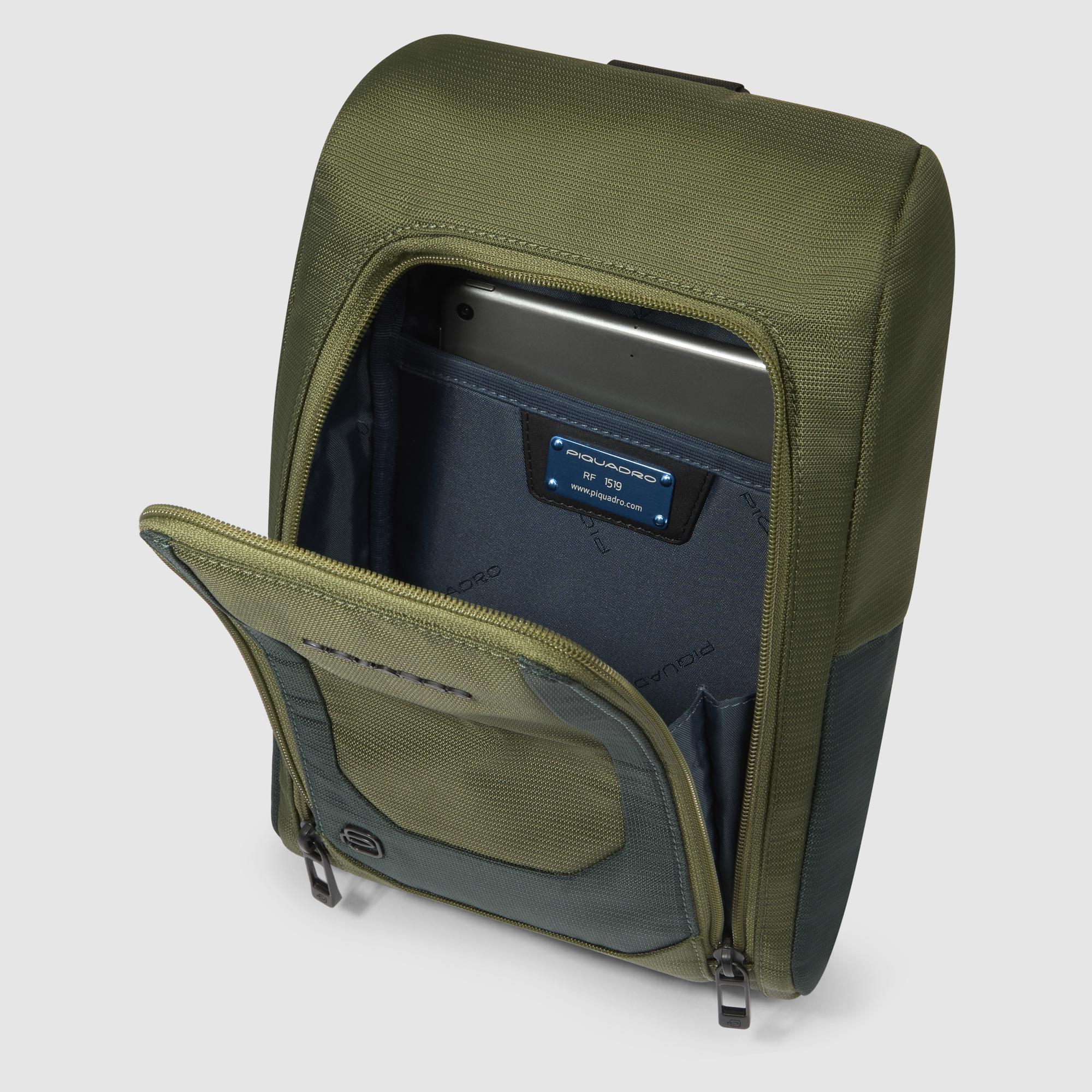 Monospalla Piquadro Uomo Porta Tablet Mini in Tessuto Riciclato e Pelle Easyjet Verde