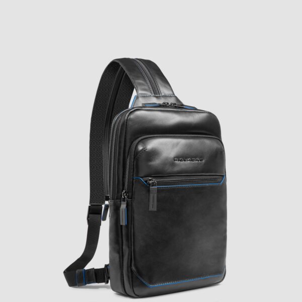 Monospalla Piquadro Uomo Portabile a Zaino in Pelle Blue Square Nero