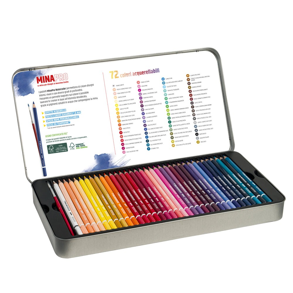 Pastelli MINAPRO Watercolor Scatola Metallo 72 Colori Seven