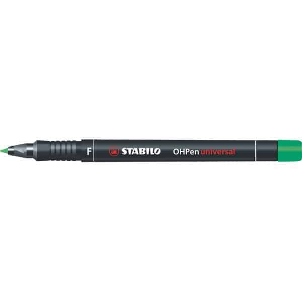 Fare presentazioni a scuola e al lavoro è più facile con STABILO OHPen universal! STABILO OHPen è la penna ad inchiostro permanente per tutte le superfici lisce, con impugnatura antiscivolo ondulata e cappuccio ventilato dotato di pratica clip. STABILO OHPen è estremamente versatile! Queste penne per lucidi sono le più amate dai grandi presentatori perché non macchiano e non sbavano sulle slide. Scrivono anche su quasi tutte le superfici più dure, per cui sono perfette per diversi tipi di utilizzo. STABILO OHPen dura fino a 3 giorni senza cappuccio ed è disponibile in 3 diverse ampiezze di tratto (S, F, M) e 8 diversi colori.
