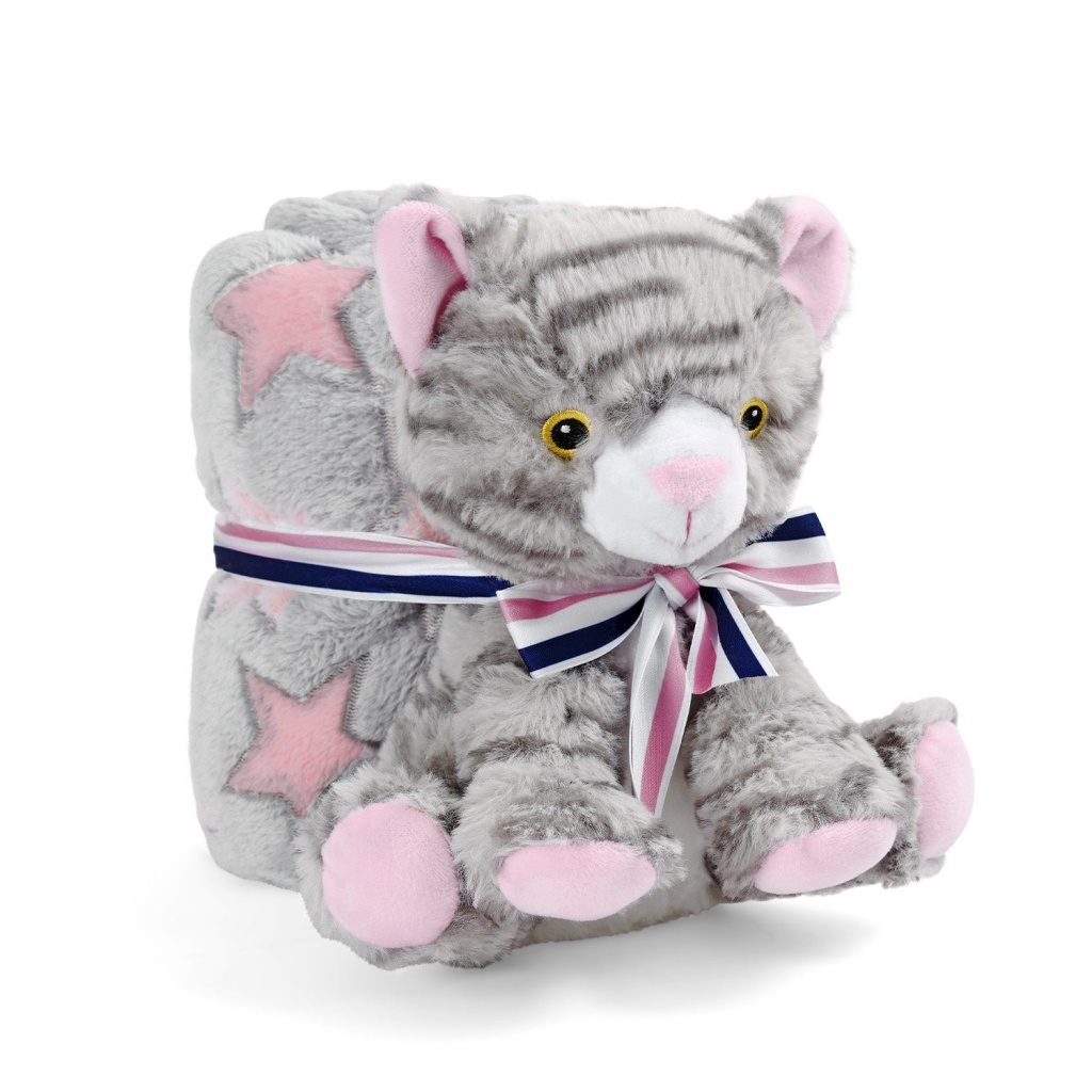 Perletti Copertina Morbida con Peluche Gatto Rosa e Grigio 80×120 cm PE13072