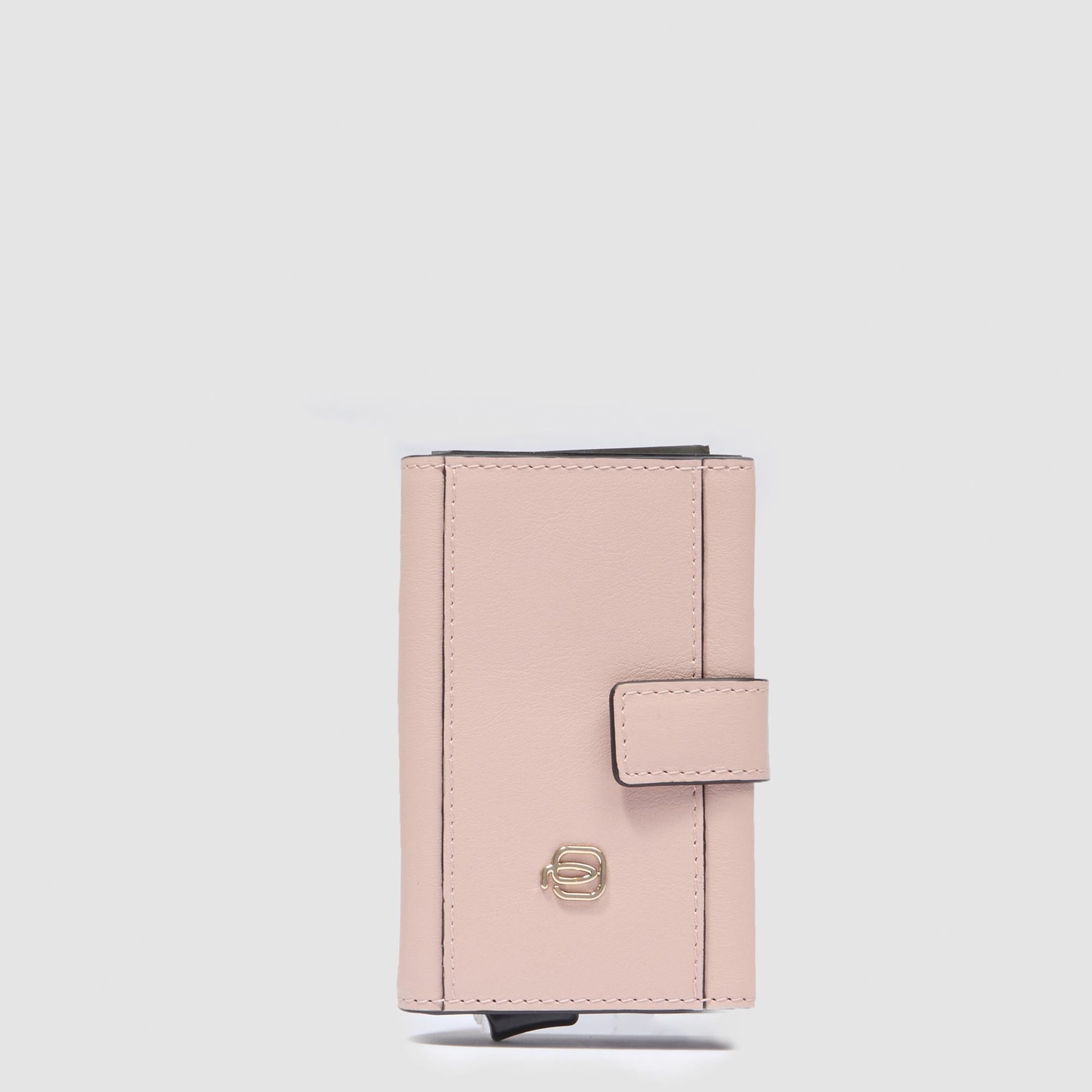 Piquadro Porta Carte di Credito in Metallo e Pelle Circle Rosa/Bianco