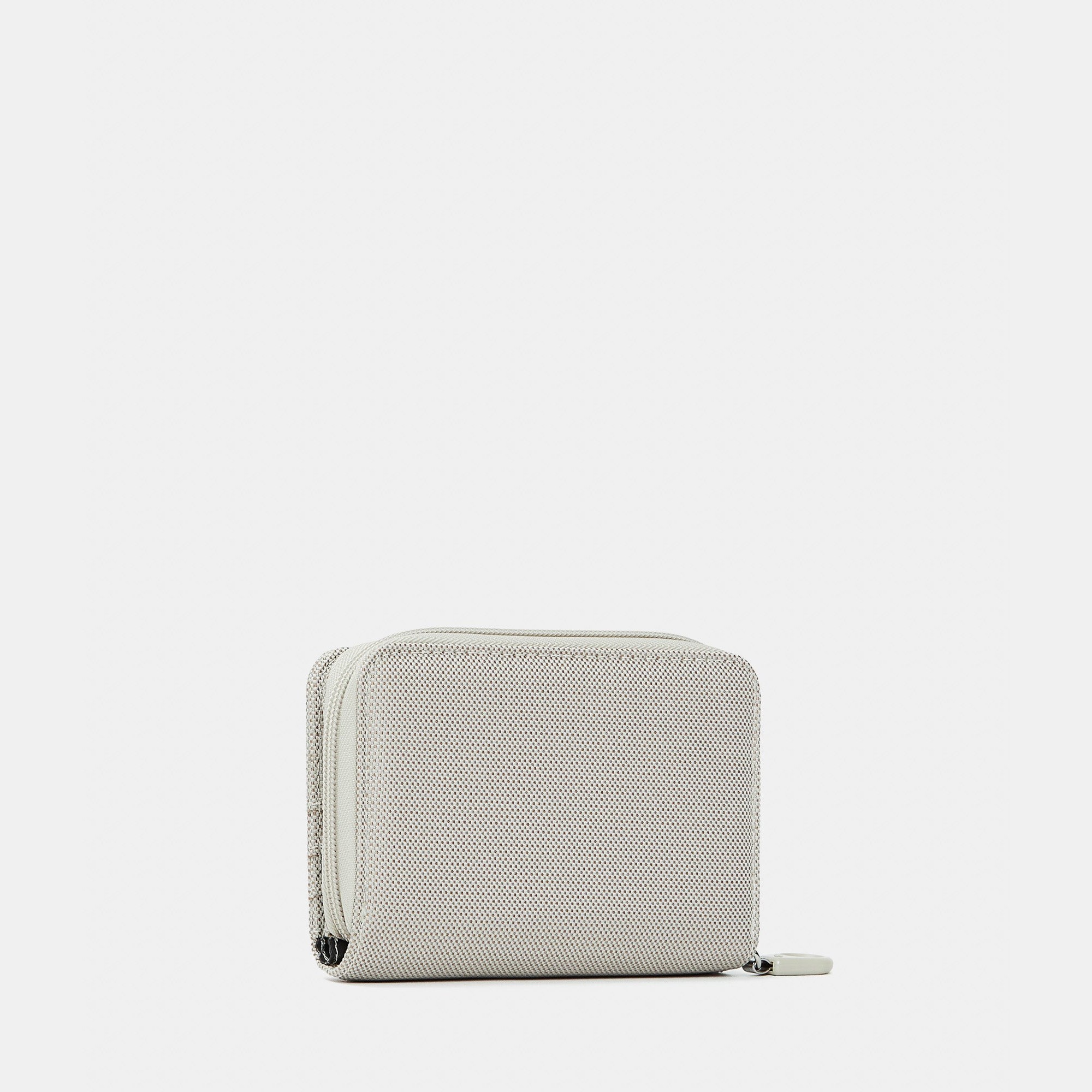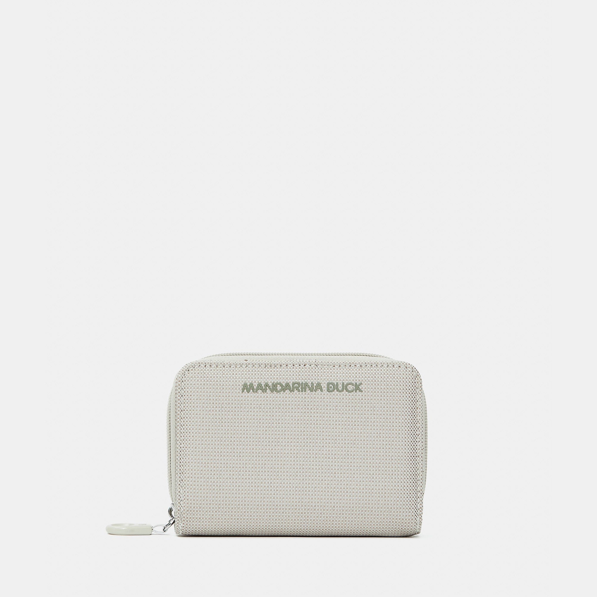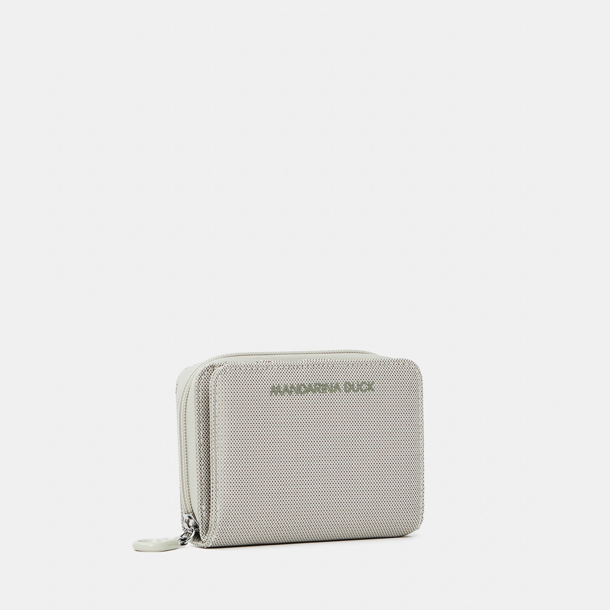 Piccolo portafoglio zip around in mitrix, storico materiale del marchio Mandarina Duck caratterizzato da resistenza, versatilità ed effetto cangiante. Presenta una patta con bottone a pressione per le carte di credito.