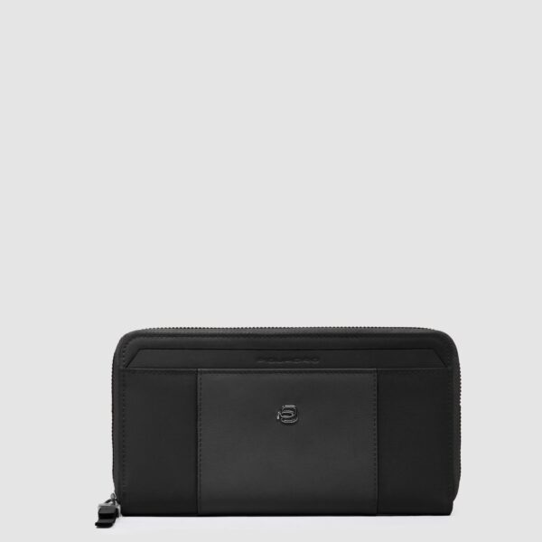 Portafoglio Donna Piquadro Grande Con Zip In Pelle e Tessuto Lyra Nero