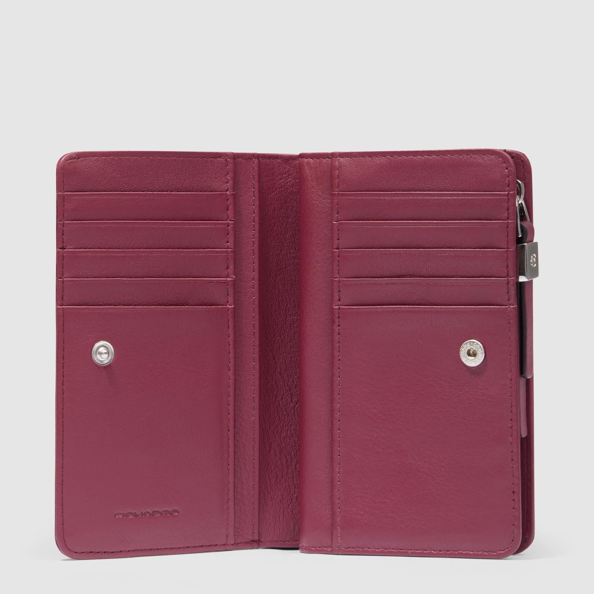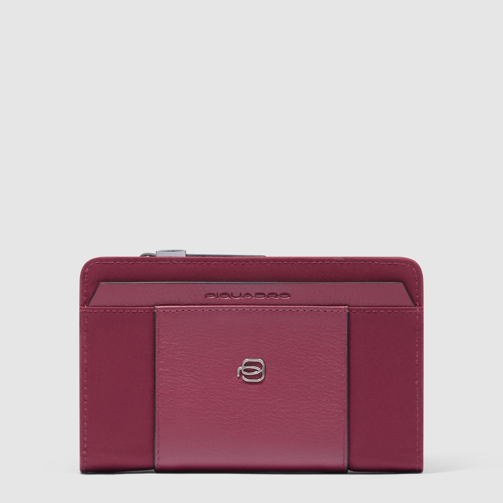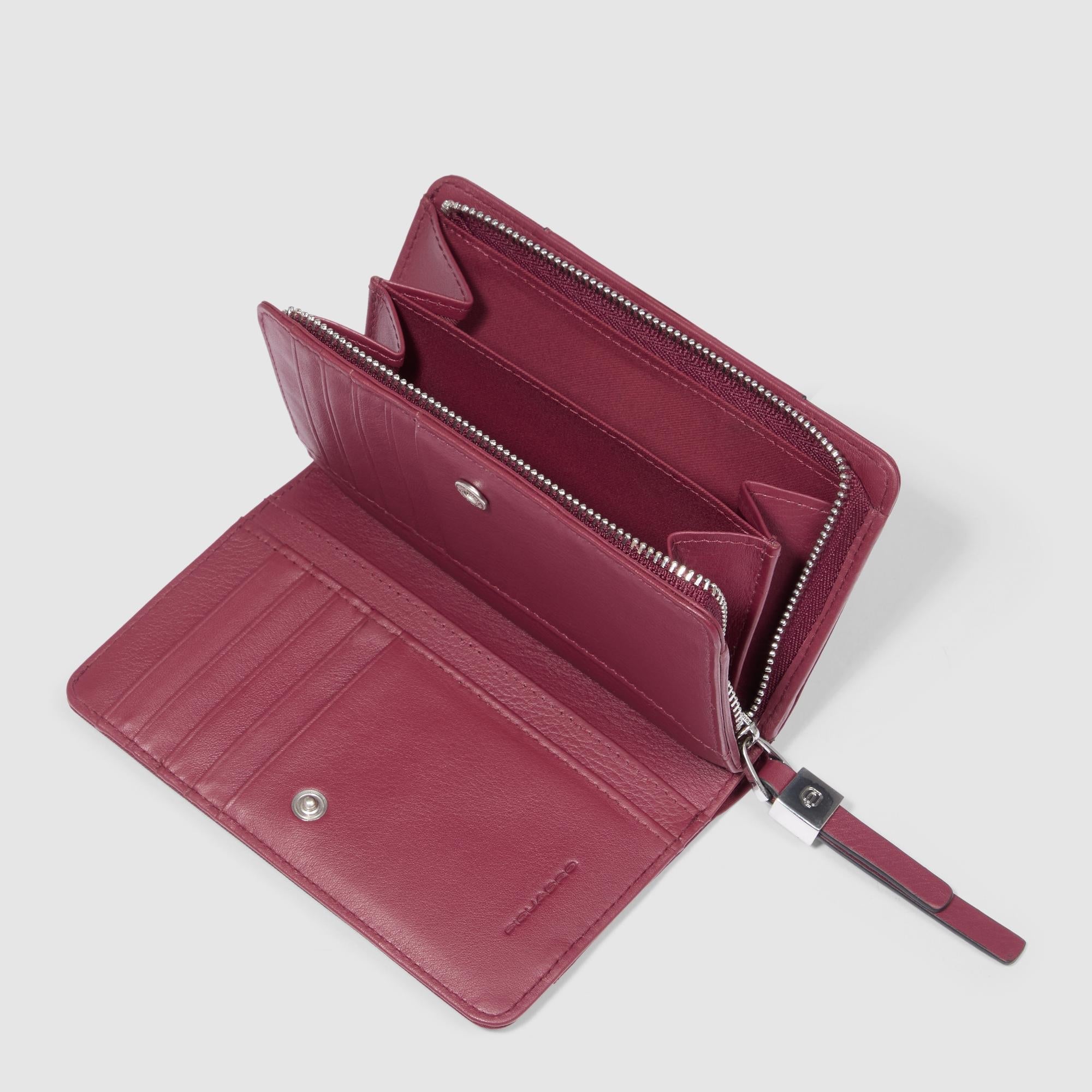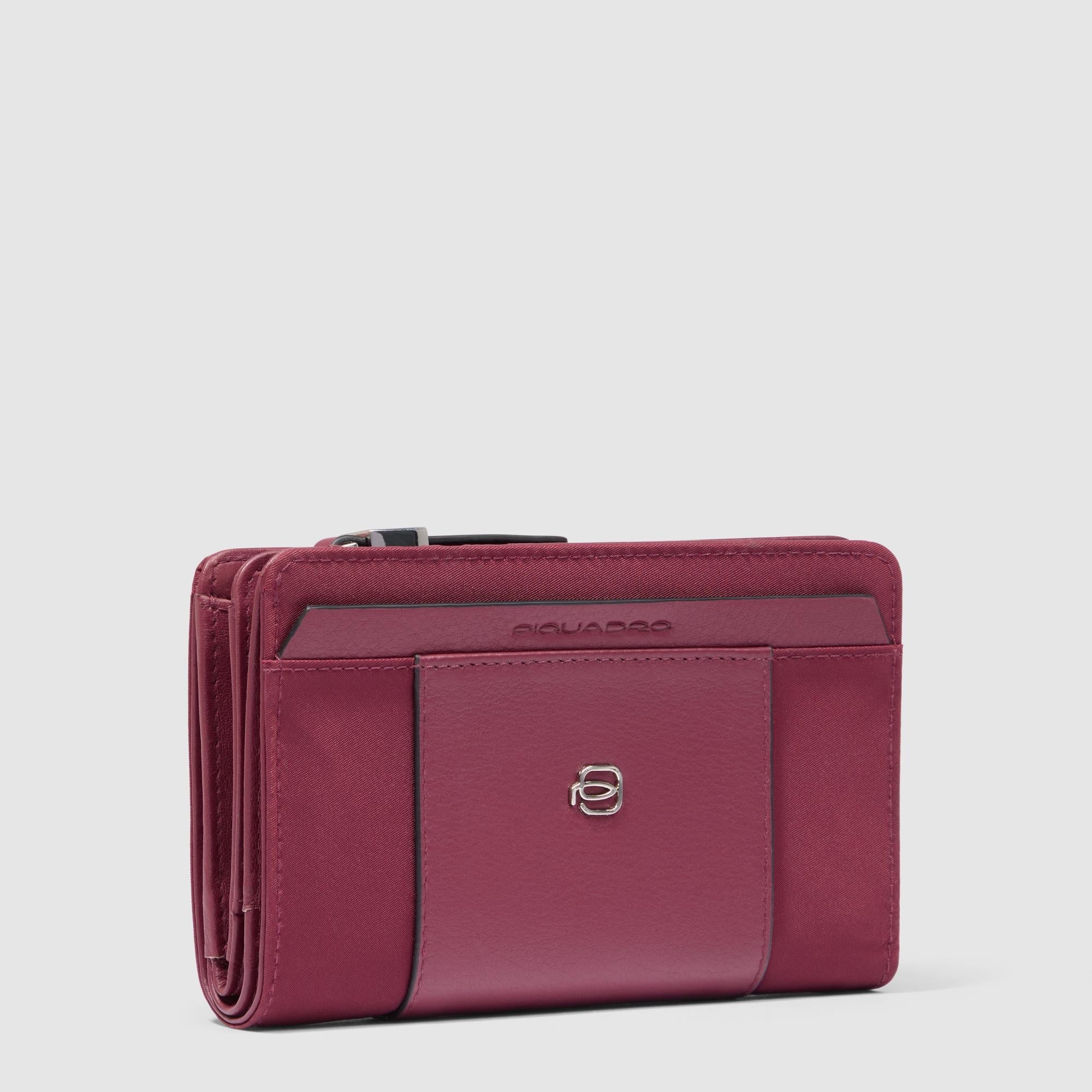 Portafoglio Donna Piquadro Medio In Pelle e Tessuto Lyra Bordeaux