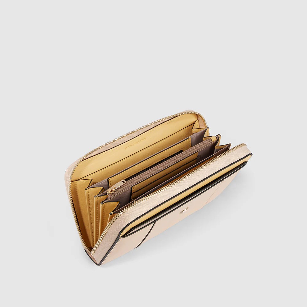 Portafoglio donna a quattro soffietti con zip, portamonete, porta carte di credito e anti-frode RFID Circle