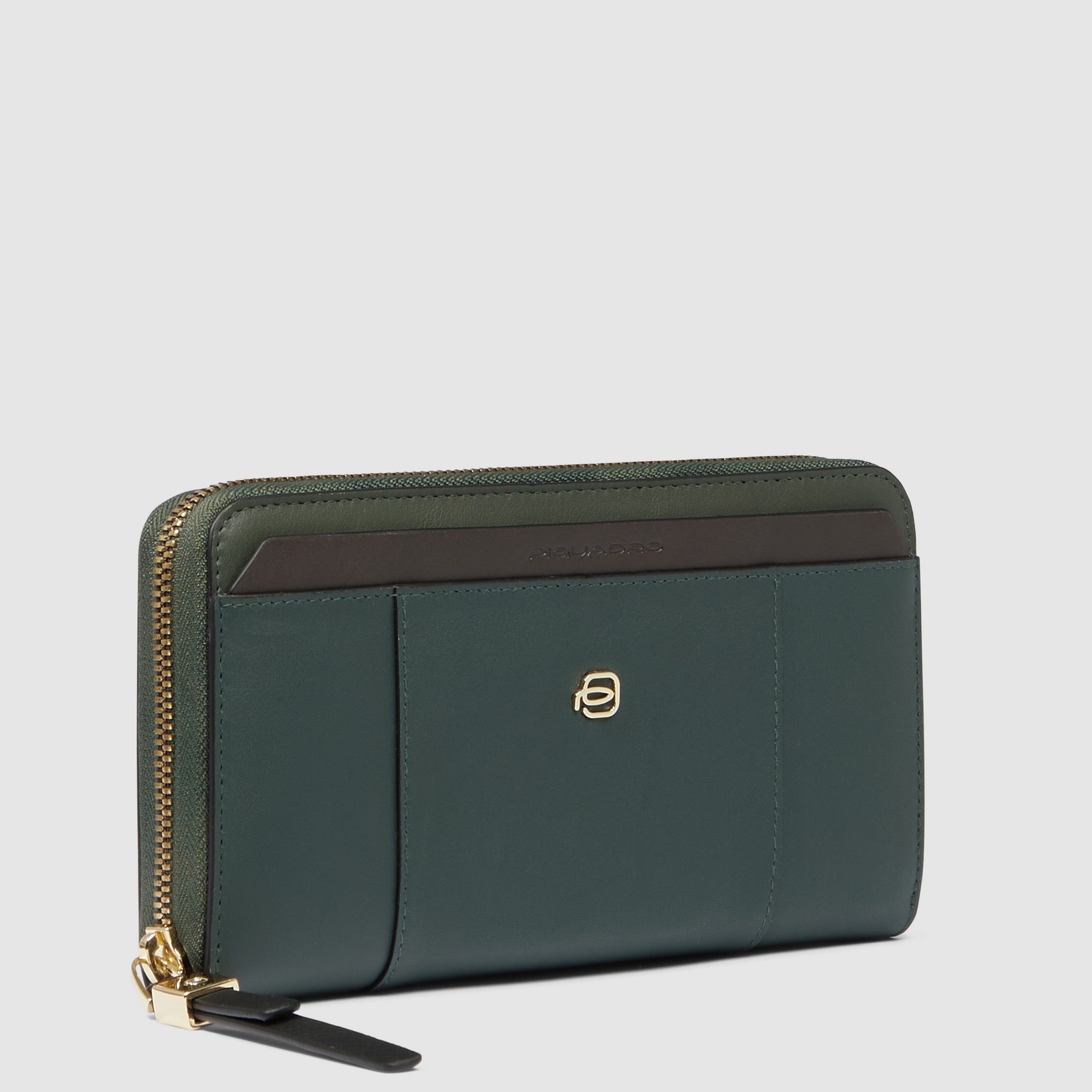 Portafoglio Piquadro donna 4 soffietti chiusura zip pelle Circle verde scuro/verde