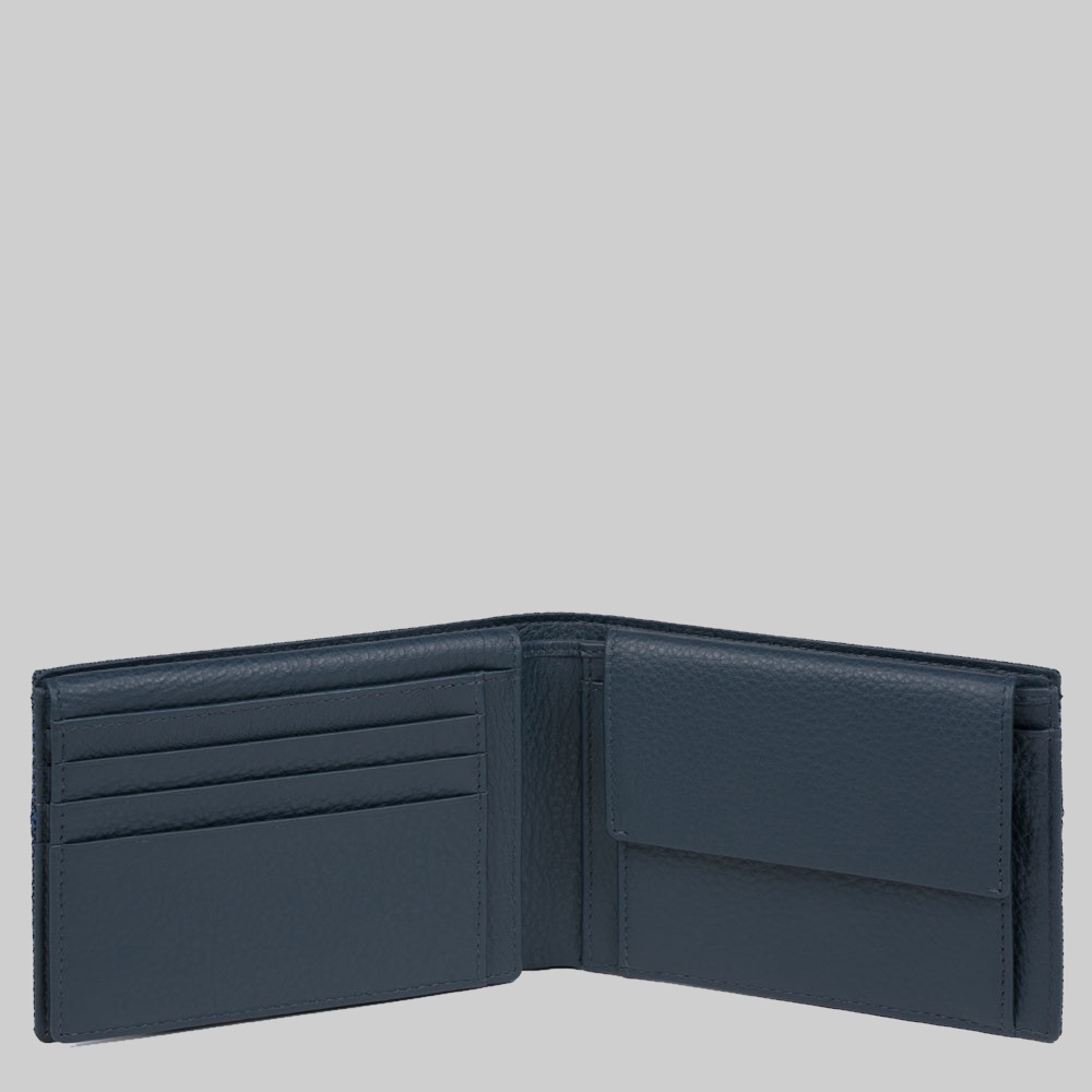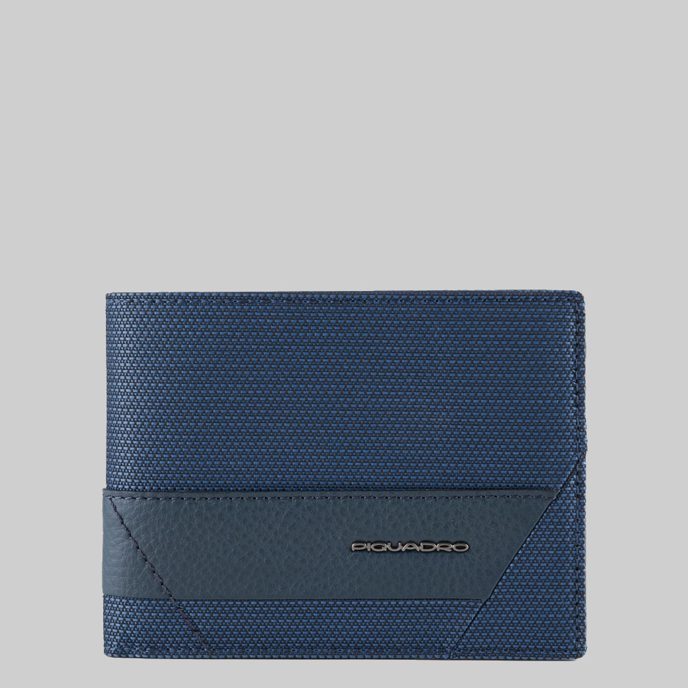 Portafoglio Piquadro Uomo con Portadocumenti, Portamonete Pelle e Tessuto Trakai Blu