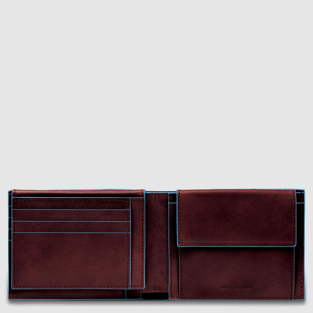 Portafoglio Piquadro uomo con portamonete in pelle Blue Square Mogano