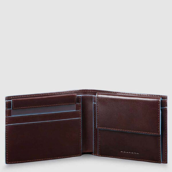 Portafoglio Piquadro uomo con portamonete in pelle Blue Square Mogano