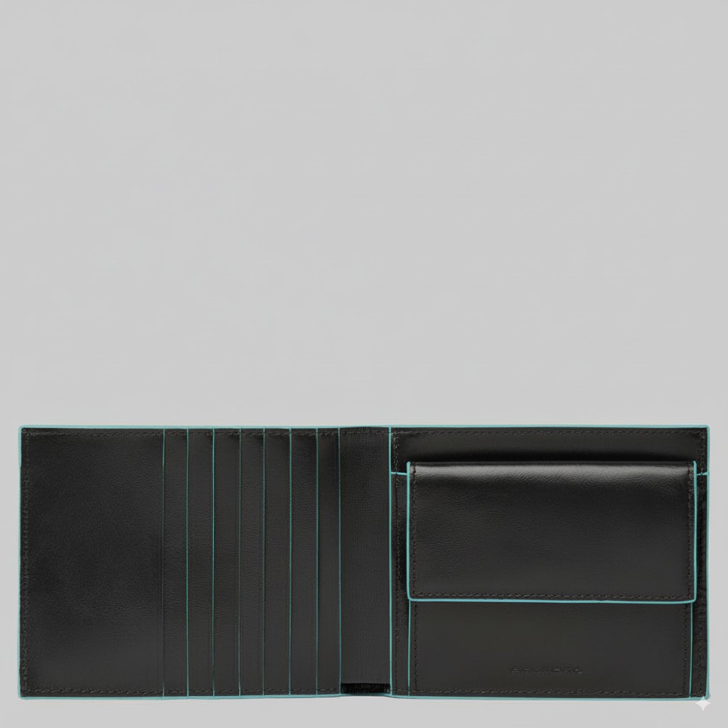 Portafoglio Piquadro Uomo con Portamonete in Pelle BLUE SQUARE Nero