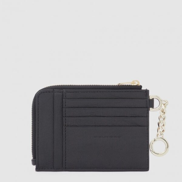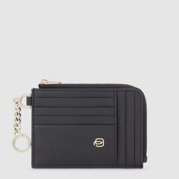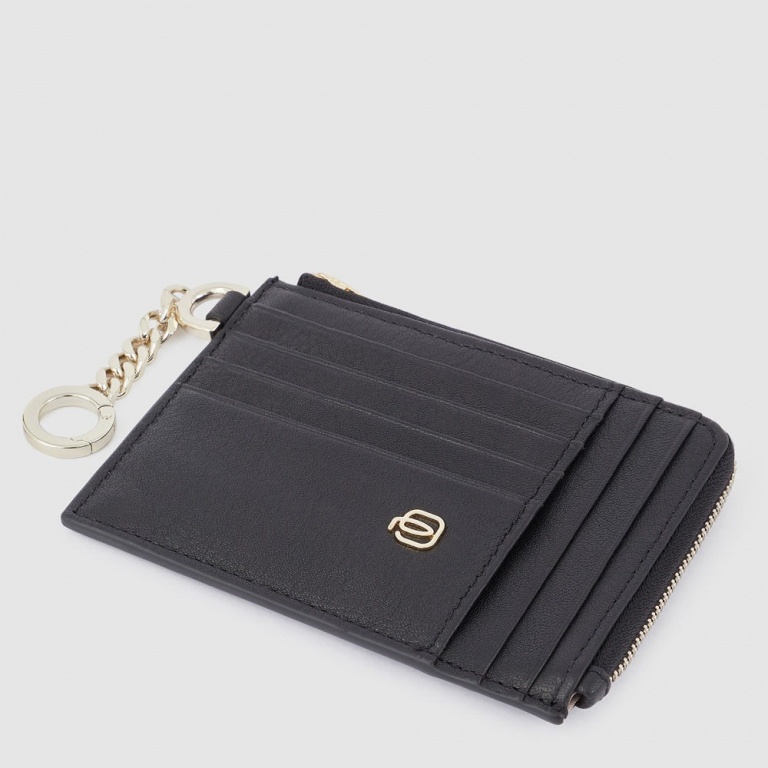 Portamonete Piqudro donna porta carte credito e portachiavi in pelle Circle Nero PP5910W92R/N