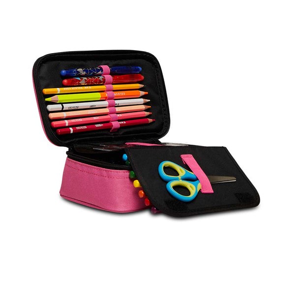 Il nostro Quick Case Seven è un astuccio ecologico realizzato al 100% in tessuto di poliestere riciclato, certificato GRS, ottenuto dal riciclo di sei bottiglie da 500 ml ciascuna. I nostri materiali soddisfano gli standard di qualità più elevati. L’astuccio contiene tutti gli strumenti essenziali per affrontare al meglio la tua giornata di scuola. Per un abbinamento perfetto, scegli uno zaino Seven.
