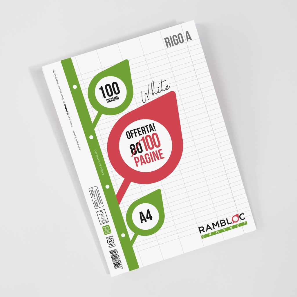 Ricambio rinforzato Rambloc 100 gr. 80+20 pagine A4 RIGO A 90524322N